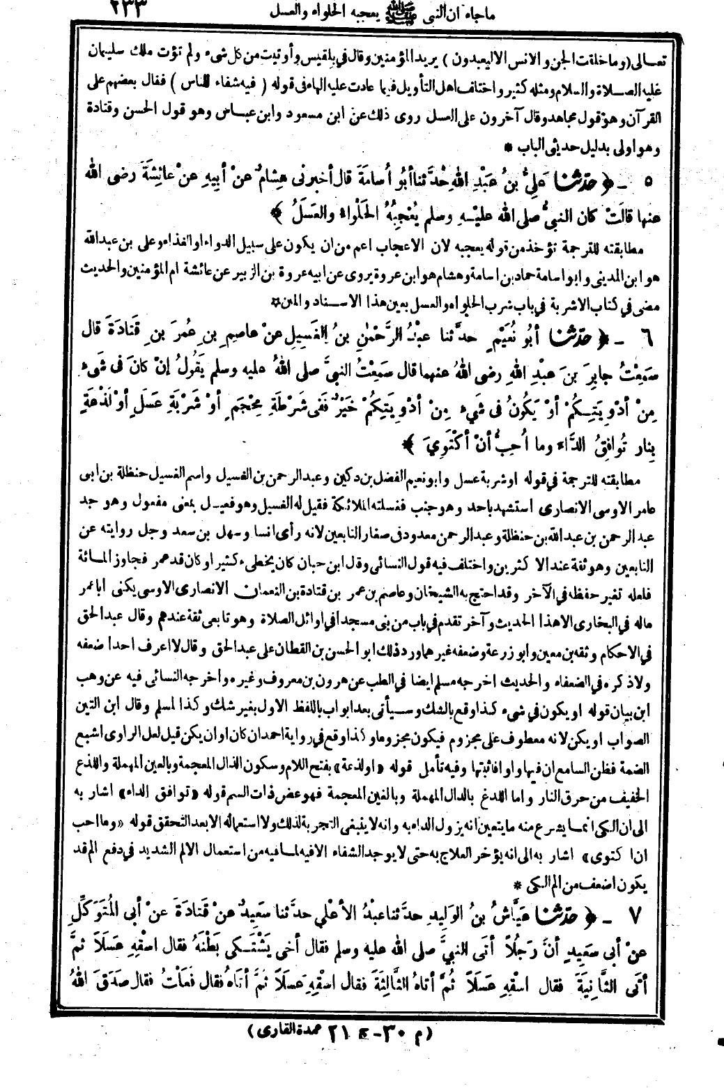 5682 - حدّثنا عَلِيُّ بنُ عَبْدِ الله حدَّثنا أبُو أُُسامَةَ قَالَ: أَخْبرنِي هِشامٌ عنْ أبِيهِ عنْ عائِشَةَ رَضِي الله عَنْهَا قالَتْ: كَانَ النبيُّ صلى الله عَلَيْهِ وَسلم، يُعْجِبُهُ الحَلْواءُ والعَسَلُ.