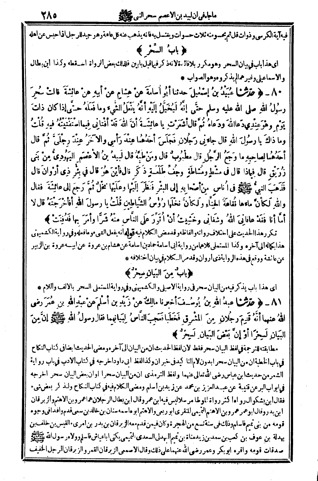 أَي: هَذَا بَاب يذكر يه من الْبَيَان سحر فِي رِوَايَة الْأصيلِيّ، والكشميهني، وَفِي رِوَايَة الْمُسْتَمْلِي السحر بِالْألف وَاللَّام.