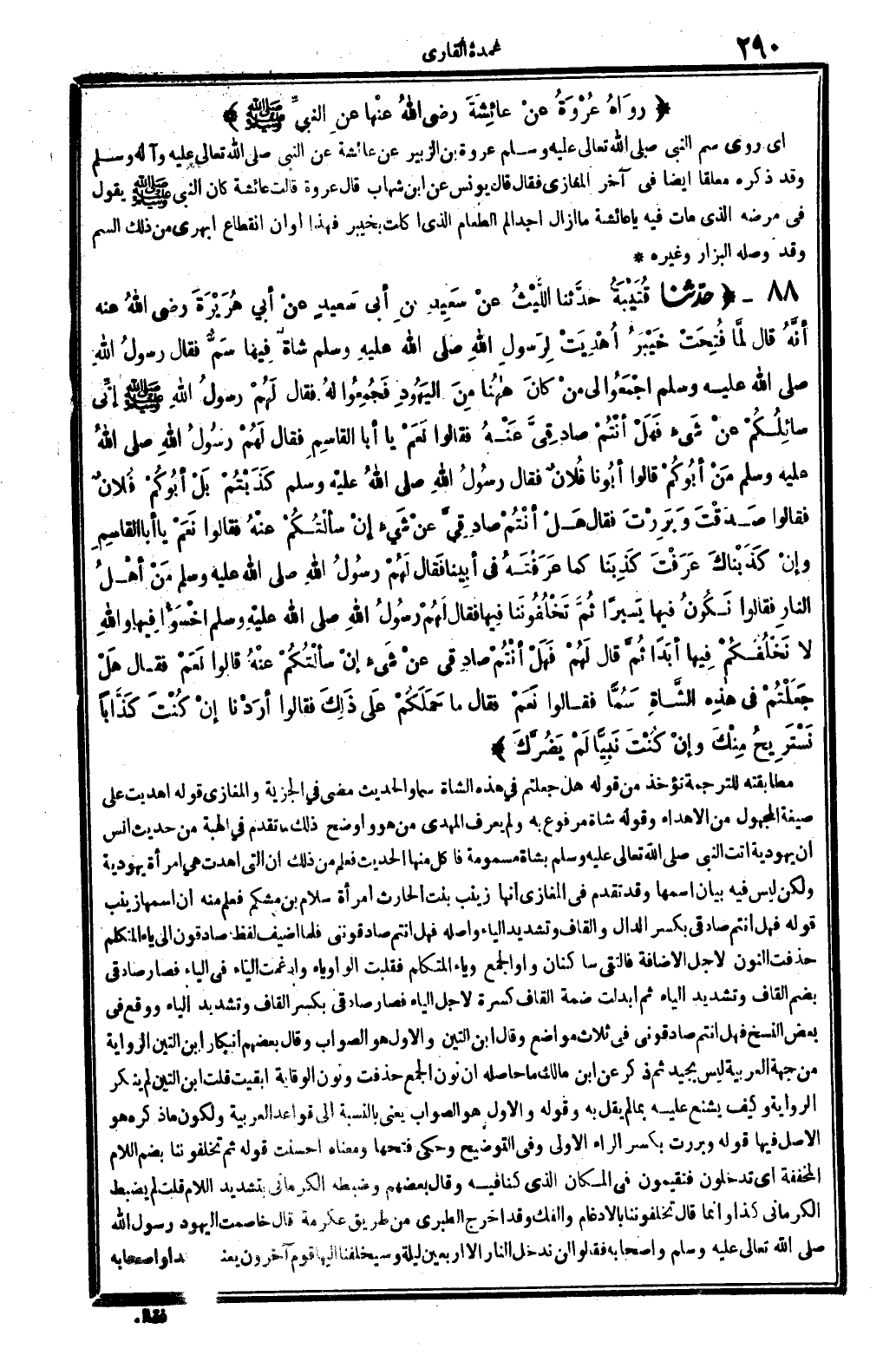 5777 - حدّثنا قُتَيْبَةُ حدَّثنا اللَّيْثُ عنْ سَعِيدِ بنِ أبي سَعيدٍ عنْ أبي هُرَيْرَةَ رَضِي الله عَنهُ أنَّهُ قَالَ: لمَّا فُتِحَتْ خَيْبَرُ أُهُدِيَتْ لِرَسولِ الله صلى الله عَلَيْهِ وَسلم شاةٌ فِيها سَمٌّ، فَقَالَ رسولُ الله صلى الله عَلَيْهِ وَسلم إجْمَعُوا لي منْ كانَ هاهُنا مِنَ اليَهُودِ، فَجُمِعُوا لَهُ، فَقَالَ لَهُمْ رسولُ الله صلى الله عَلَيْهِ وَسلم: إنِّي سائِلكُمْ عنْ شَيءٍ، فَهَلْ أنْتُمْ صادِقِيَّ عَنْهُ؟ فَقَالُوا: نَعَمْ يَا أَبَا القاسِمِ، فَقَالَ لَهُمْ رسُولُ الله صلى الله عَلَيْهِ وَسلم: مَنْ أبُوكُمْ؟ قَالُوا: أبُونا فُلانٌ، فَقَالَ رسُولُ الله صلى الله عَلَيْهِ وَسلم: كَذَبْتُمْ، بَلْ أبُوكُمْ فُلانٌ فَقَالُوا: صَدَقْتَ وَبَرِرْتَ، فَقَالَ: هَلْ أنْتُمْ صادِقِيَّ عنْ شَيءٍ إنْ سألْتُكُمْ عنْهُ؟ فَقَالُوا: نَعَمْ يَا أَبَا القاسِمِ، وإنْ كَذَبْناكَ عَرَفْتَ كَذِبَنا كَمَا عَرَفْتَهُ فِي أَبينَا، فَقال لَهُمْ رسُولُ الله صلى الله عَلَيْهِ وَسلم: مَنْ أهْلُ النارِ؟ فَقَالُوا نَكُونُ فِيهَا يَسيراً ثُمَّ تَخْلُفُونَنا فِيها، فَقَالَ لَهُمْ رسُولُ الله صلى الله عَلَيْهِ وَسلم: اخْسَؤُا فِيها وَالله لَا نَخْلُفُكُمْ فِيها أبَداً، ثُمَّ قَالَ لَهُمْ: فَهَلْ أنْتُمْ صادِقي عنْ شَيءٍ إنْ سألْتُكُمْ عنْهُ؟ قَالُوا: نَعَمْ. فَقَالَ: هَلْ جَعَلْتُمْ فِي هاذِه الشَّاةِ سُمًّا؟ فَقَالُوا: نَعَمْ. فَقَالَ: مَا حَمَلَكُمْ عَلى ذَلِكَ؟ فَقَالُوا: أرَدْنا إنْ كُنْتَ كَذَّاباً نَسْتَرِيحُ مِنْكَ، وإنْ كُنْتَ نَبِيًّا لَمْ يَضُرَّكَ. (انْظُر الحَدِيث: 3169 وطرفه) .