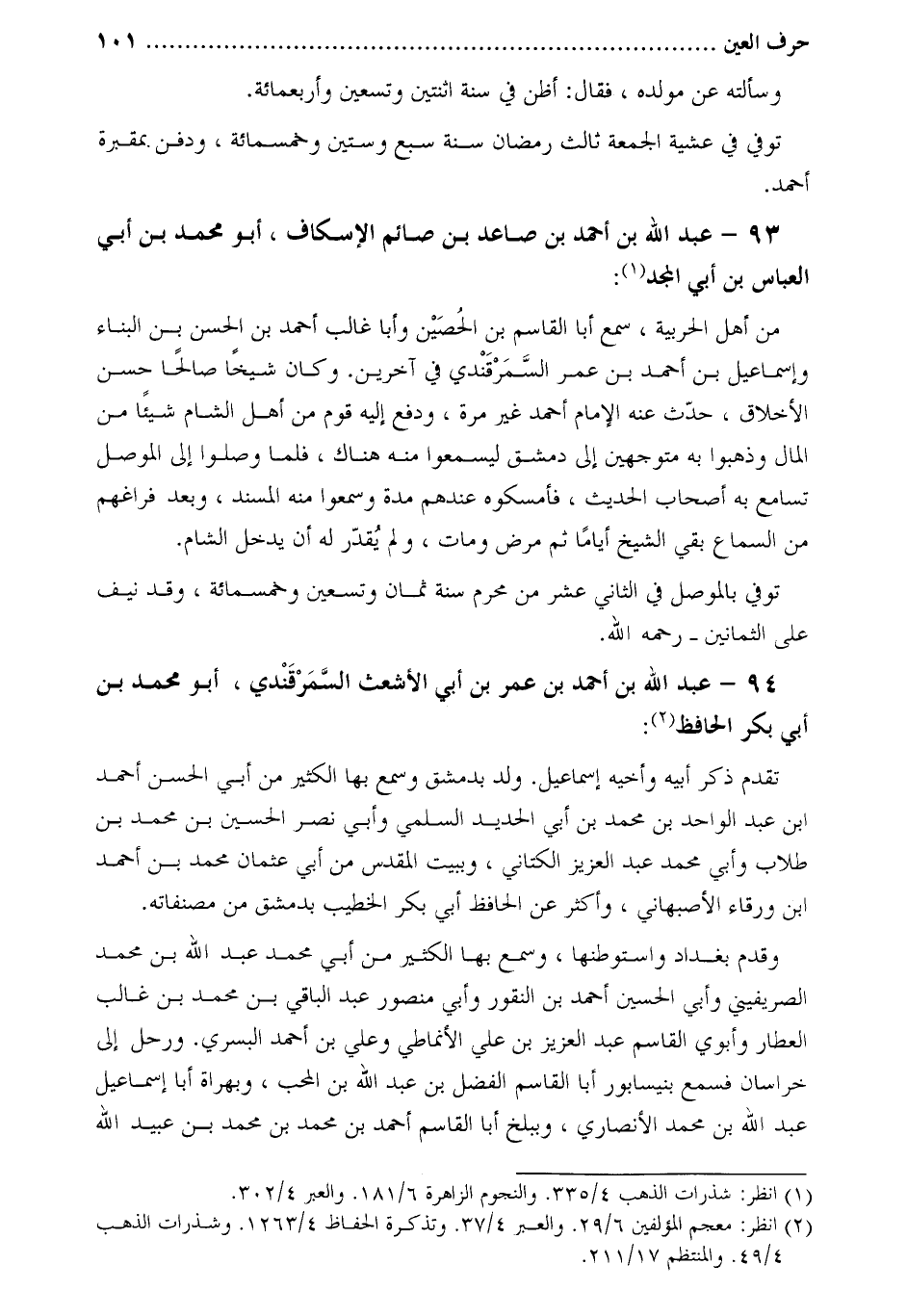 94- عَبْد اللَّه بْن أَحْمَد بْن عُمَر بْن أبي الأشعث السّمرقندي، أبو محمد بن أبي بكر الحافظ [2] :