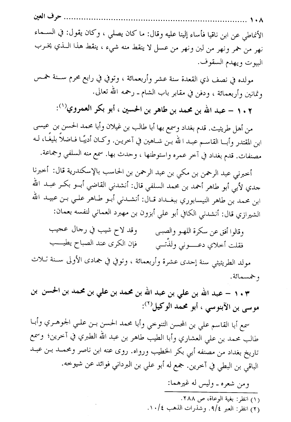 102- عبد الله بن محمد بن طاهر بن الحسين، أبو بكر العمروي [1] :