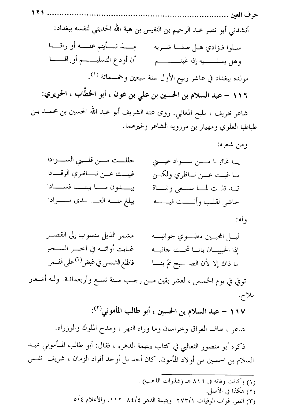 [3] انظر: فوات الوفيات 1/273. ويتيمة الدهر 4/84- 112. والأعلام 4/5.