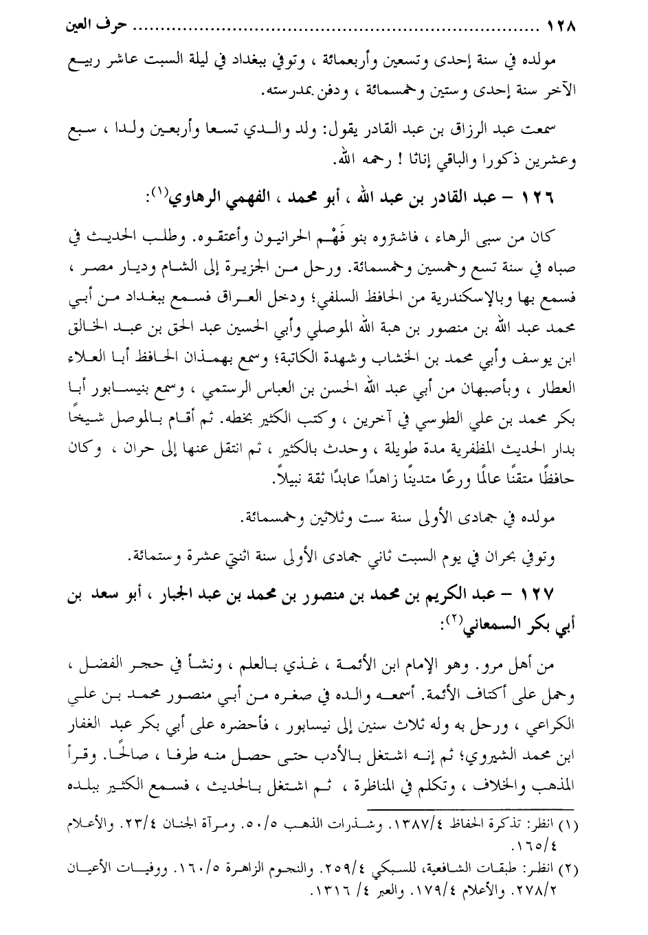 127- عَبْد الكريم بْن مُحَمَّد بْن مَنْصُور بْن محمد بن عبد الجبار، أبو سعد بن أبي بكر السمعاني [2] :