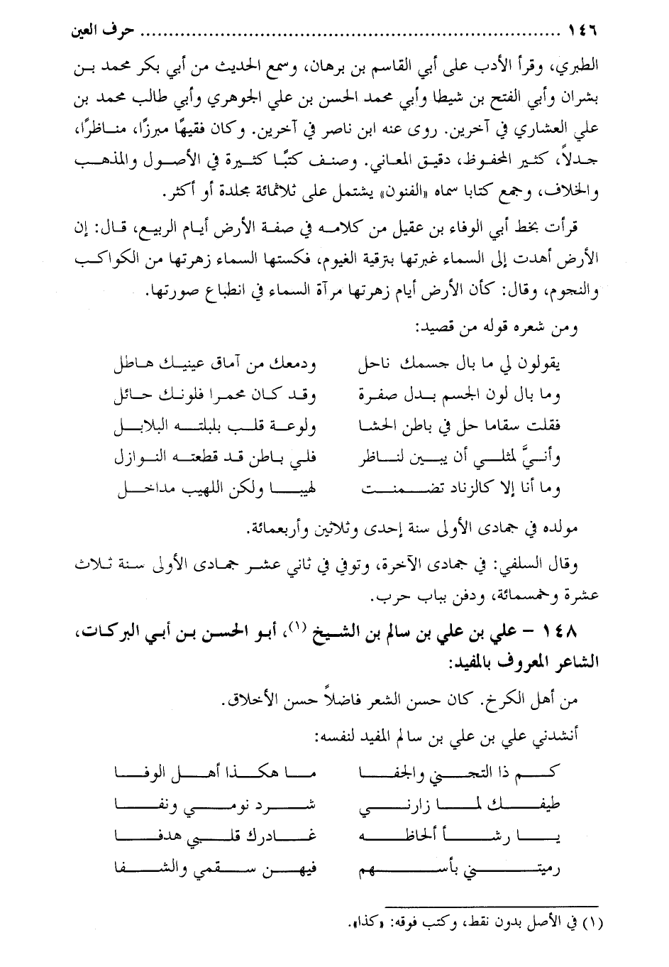 148- علي بن علي بن سالم بن الشيخ [1] ، أبو الحسن بن أبي البركات، الشاعر المعروف بالمفيد: