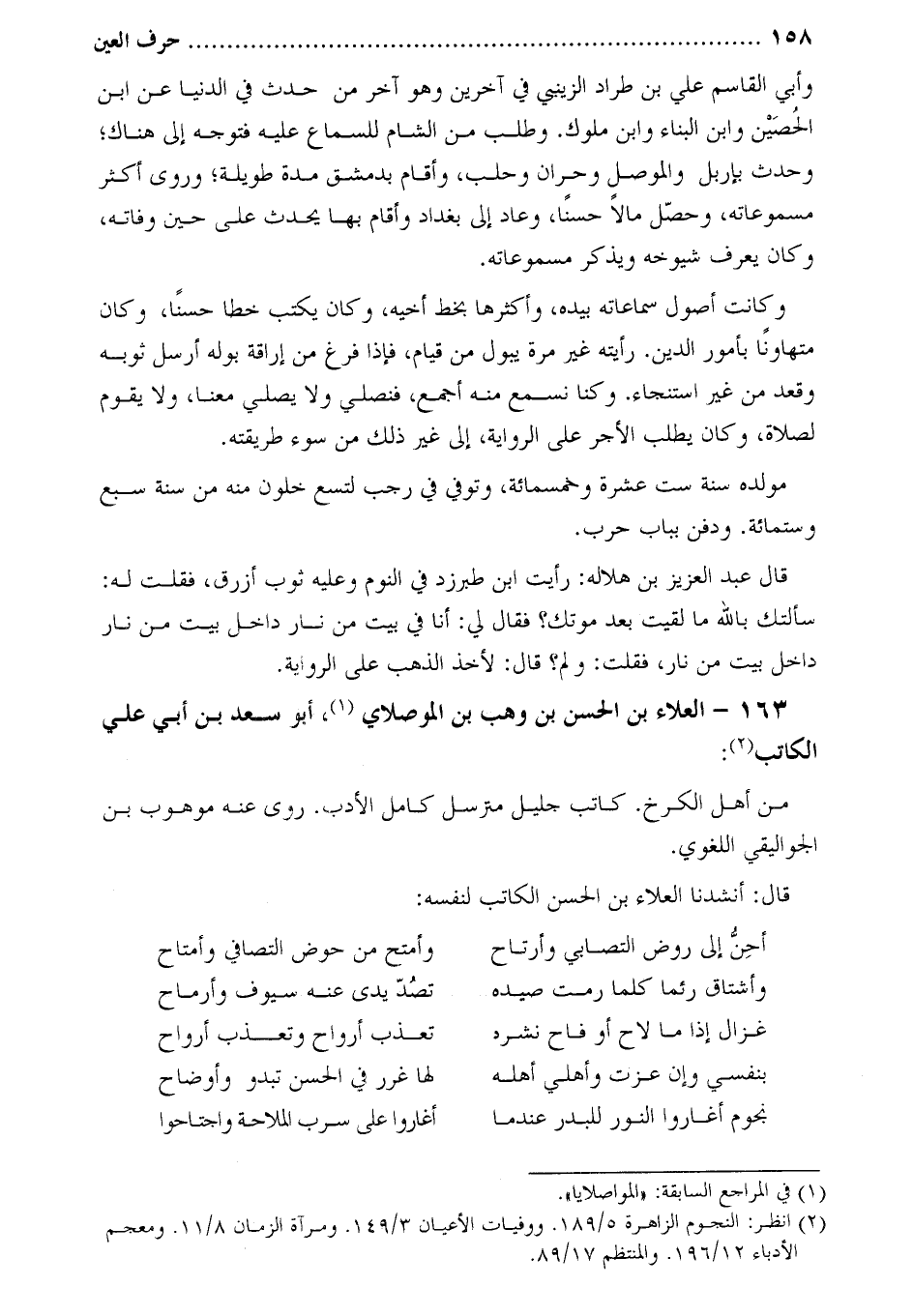 163- العلاء بن الحسن بن وهب بن الموصلاي [1] ، أبو سعد بن أبي علي الكاتب [2] :