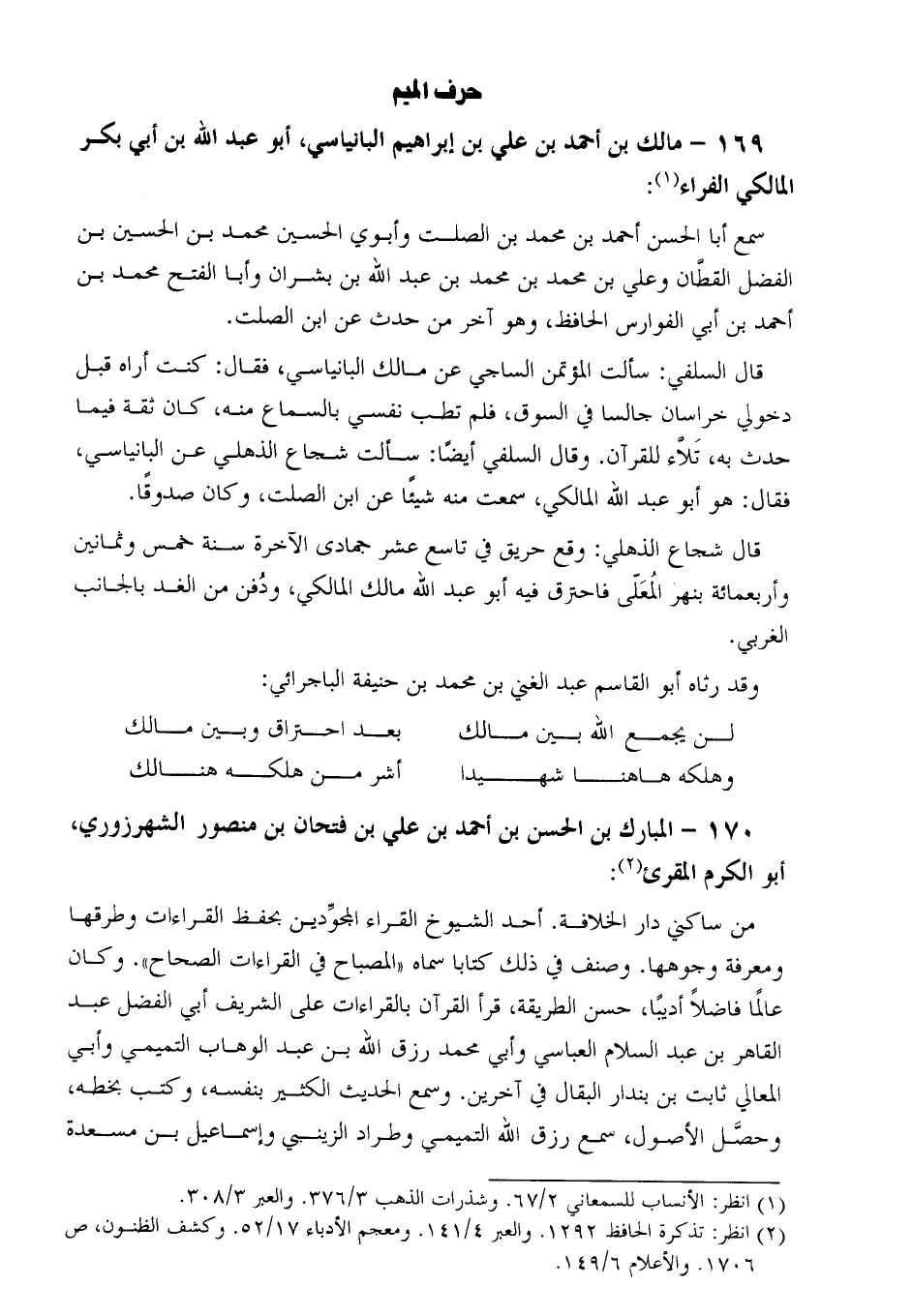 169- مالك بن أحمد بن علي بن إبراهيم البانياسي، أبو عبد الله بن أبي بكر المالكي الفراء [1] :