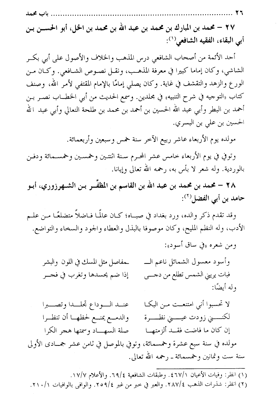 27- محمد بن المبارك بْنُ مُحَمَّدِ بْنِ عَبْدِ اللَّهِ بْنِ مُحَمَّدِ بْنِ الخل، أبو الحسن بن أبي البقاء، الفقيه الشافعي [1] :