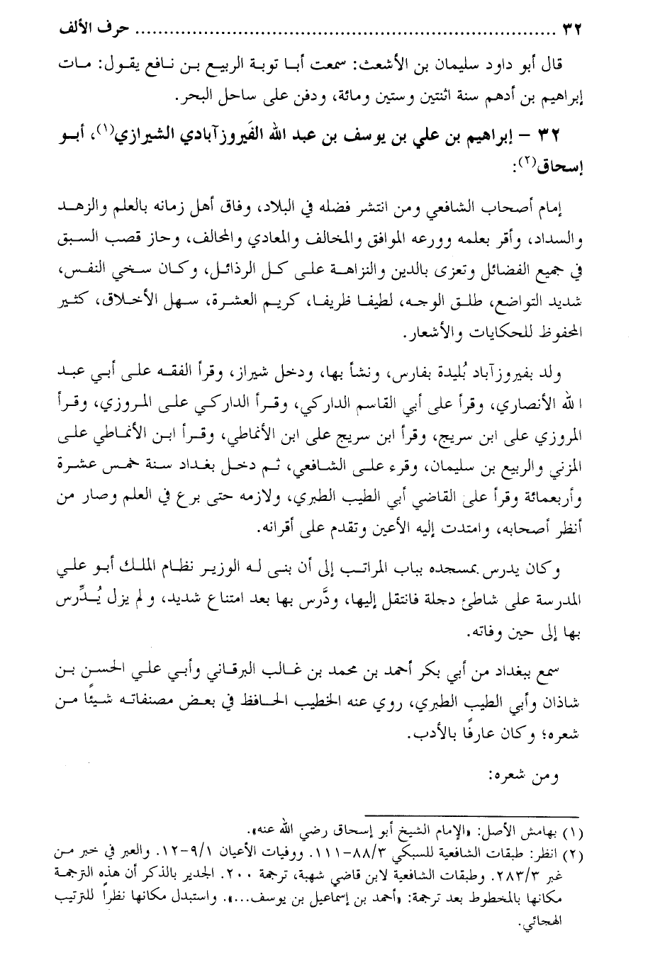 32- إبراهيم بن علي بن يوسف بن عبد الله الفيروزآبادي الشيرازي [1] ، أبو إسحاق [2] :