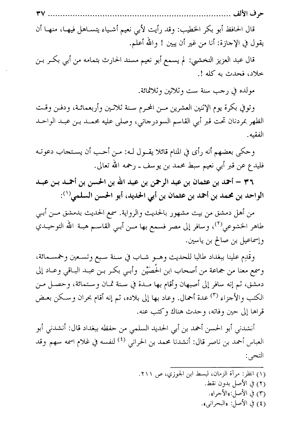 36- أحمد بن عثمان بن عَبْد الرَّحْمَن بن عبد الله بن الحسن بن أَحْمَد بْن عَبْد الواحد بْن مُحَمَّد بْن أَحْمَد بْن عثمان بْن أَبِي الحديد، أبو الحسن السلمي [1] :