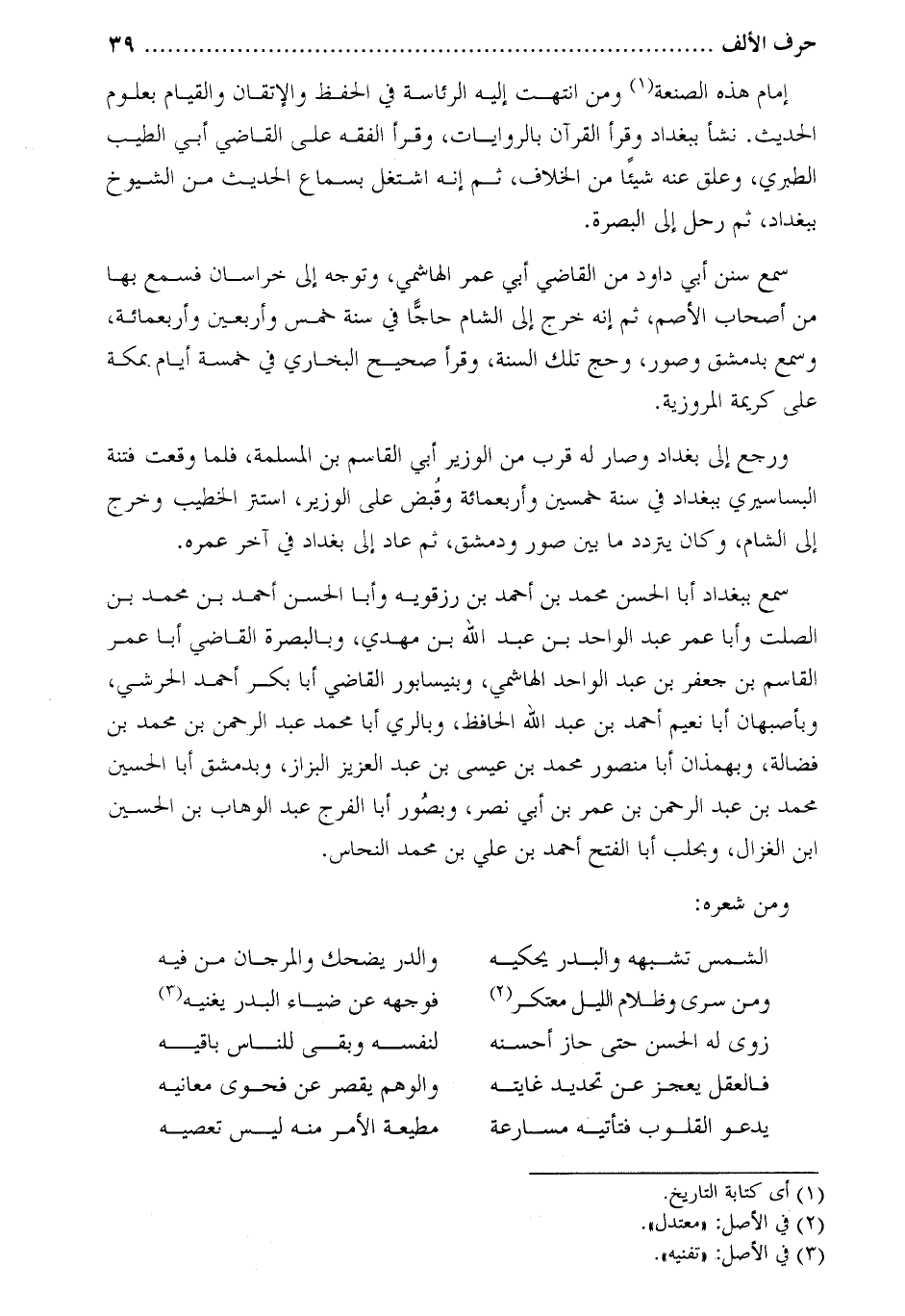إمام هذه الصنعة [1] ومن انتهت إليه الرئاسة في الحفظ والإتقان والقيام بعلوم الحديث. نشأ ببغداد وقرأ القرآن بالروايات، وقرأ الفقه على القاضي أبي الطيب الطبري، وعلق عنه شيئا من الخلاف، ثم إنه اشتغل بسماع الحديث من الشيوخ ببغداد، ثم رحل إلى البصرة.