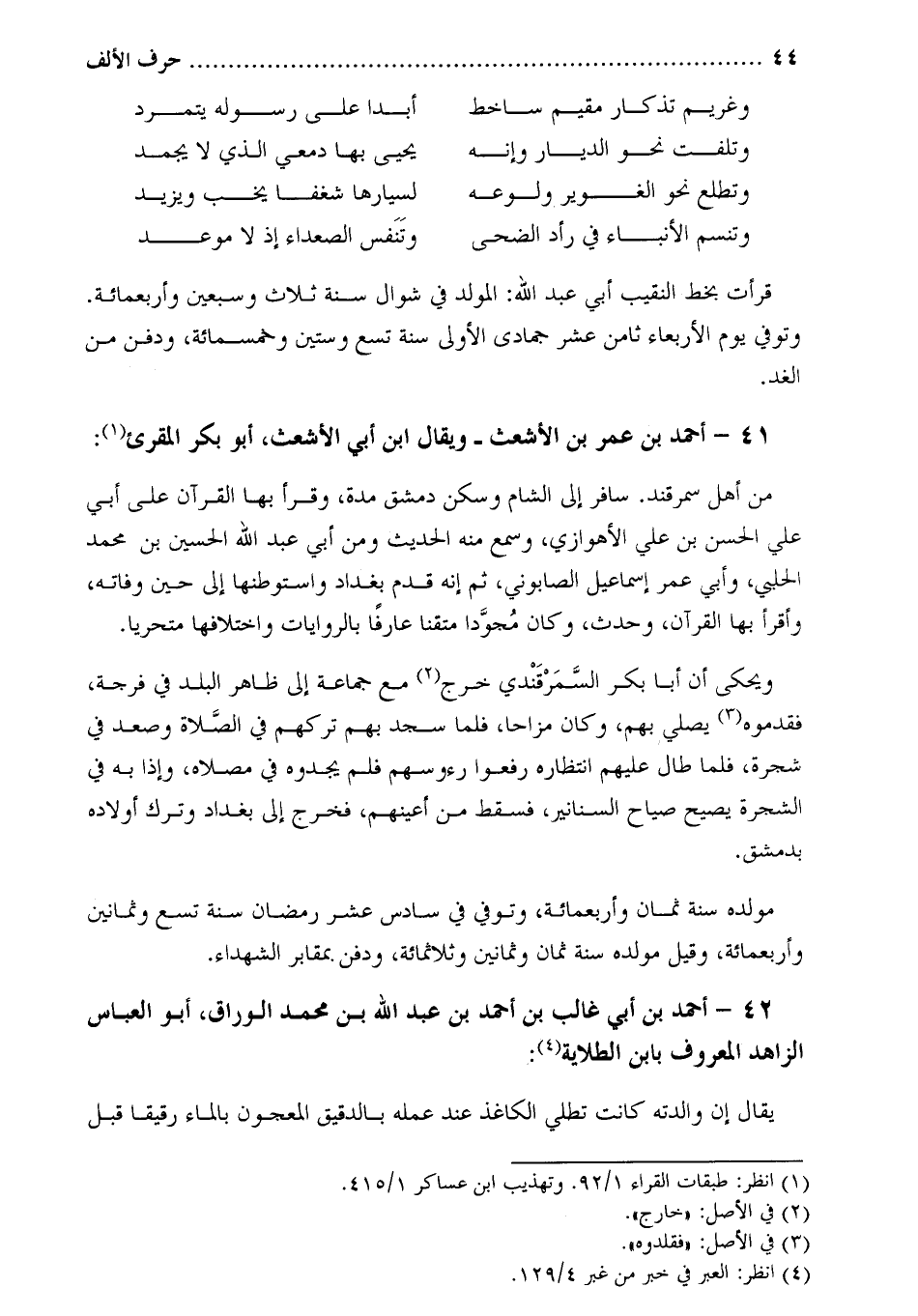 42- أحمد بن أبي غالب بْن أَحْمَد بْن عَبْد اللَّه بْن مُحَمَّد الوراق، أبو العباس الزاهد المعروف بابن الطلاية [4] :