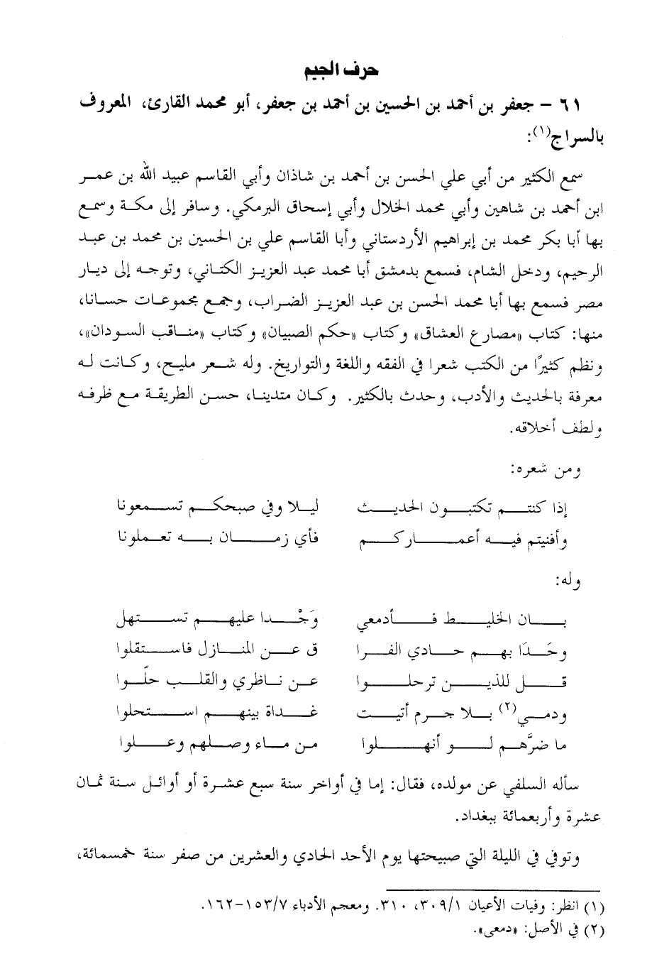 61- جعفر بْن أَحْمَد بْن الْحُسَيْن بْن أَحْمَد بْن جعفر، أبو محمد القارئ، المعروف بالسراج [1] :