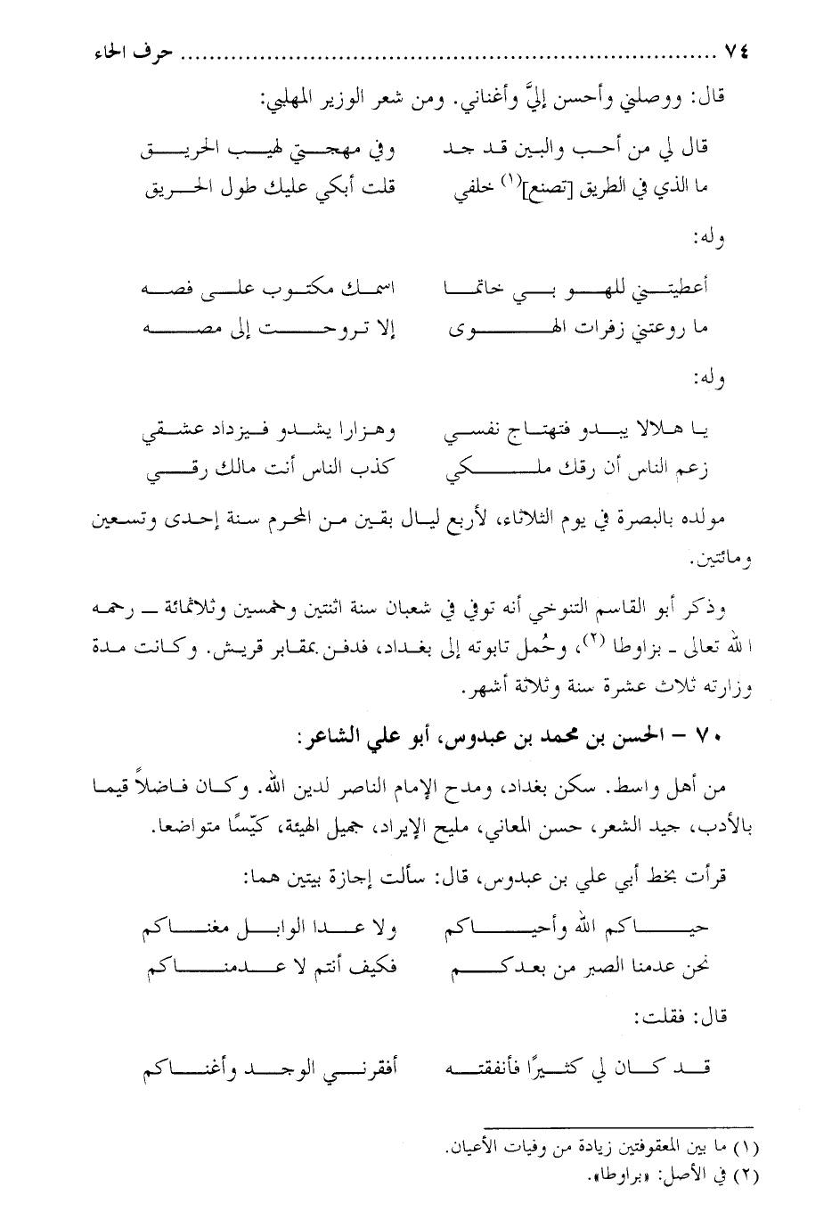 70- الحسن بن محمد بن عبدوس، أبو علي الشاعر: