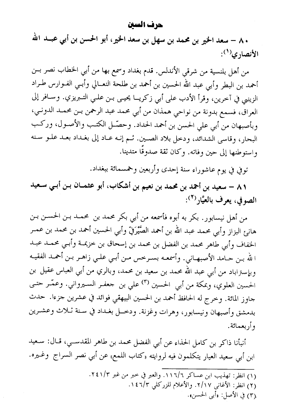 81- سعيد بن أحمد بن محمد بن نعيم بن أشكاب، أبو عثمان بن أبي سعيد الصوفي، يعرف بالعيّار [2] :