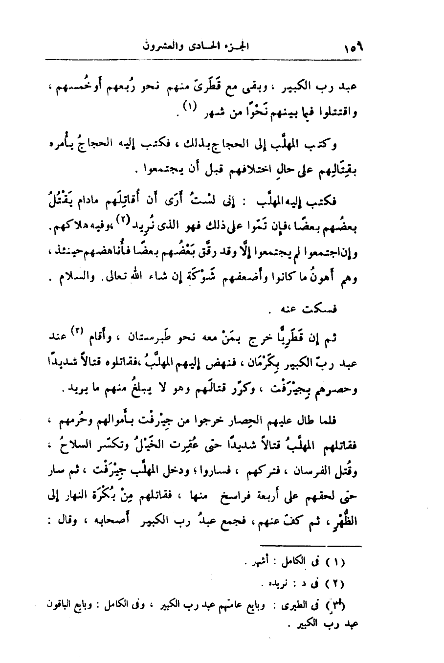 فكتب إليه المهلّب: إنى لست أرى أن أقاتلهم مادام يقتل بعضهم بعضا، فإن تمّوا على ذلك فهو الذى نريد «2» ، وفيه هلاكهم.