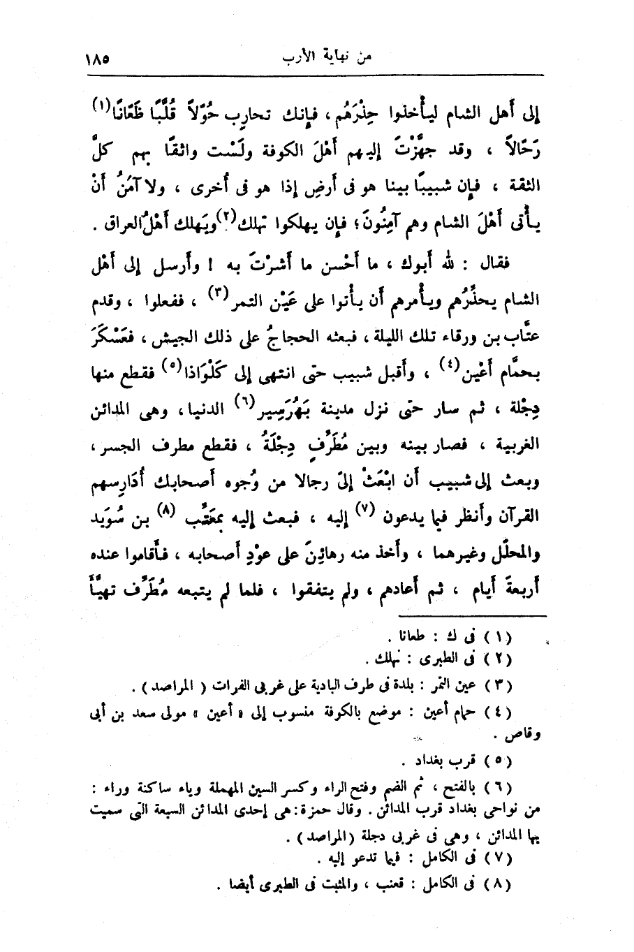 فقال: لله أبوك، ما أحسن ما أشرت به! وأرسل إلى أهل الشام يحذّرهم ويأمرهم أن يأتوا على عين التمر «3» ، ففعلوا، وقدم عتّاب بن ورقاء تلك الليلة، فبعثه الحجاج على ذلك الجيش، فعسكر بحمّام أعين «4» ، وأقبل شبيب حتى انتهى إلى كلواذا «5» فقطع منها دجلة، ثم سار حتى نزل مدينة بهرسير «6» الدنيا، وهى المدائن الغربية، فصار بينه وبين مطرّف دجلة، فقطع مطرف الجسر، وبعث إلى شبيب أن ابعث إلىّ رجالا من وجوه أصحابك أدارسهم القرآن وأنظر فيما يدعون «7» إليه، فبعث إليه بمعتّب «8» بن سويد والمحلّل وغيرهما، وأخذ منه رهائن على عود أصحابه، فأقاموا عنده أربعة أيام، ثم أعادهم، ولم يتفقوا، فلما لم يتبعه مطرّف تهيّأ