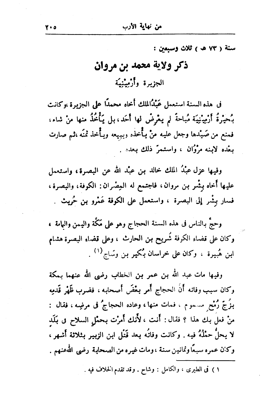سنة (73 هـ) ثلاث وسبعين: