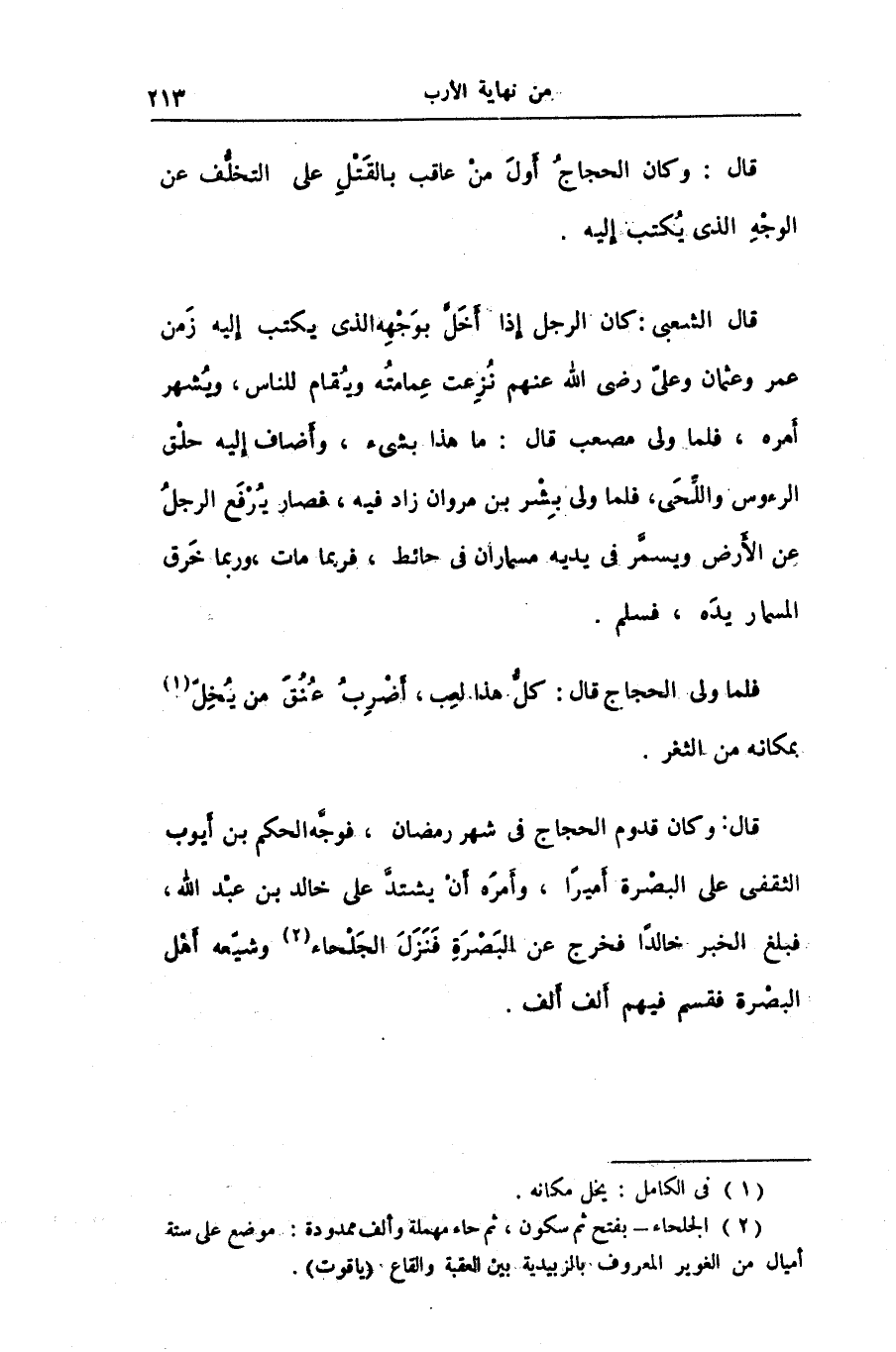 قال: وكان الحجاج أول من عاقب بالقتل على التخلّف عن الوجه الذى يكتب إليه.
