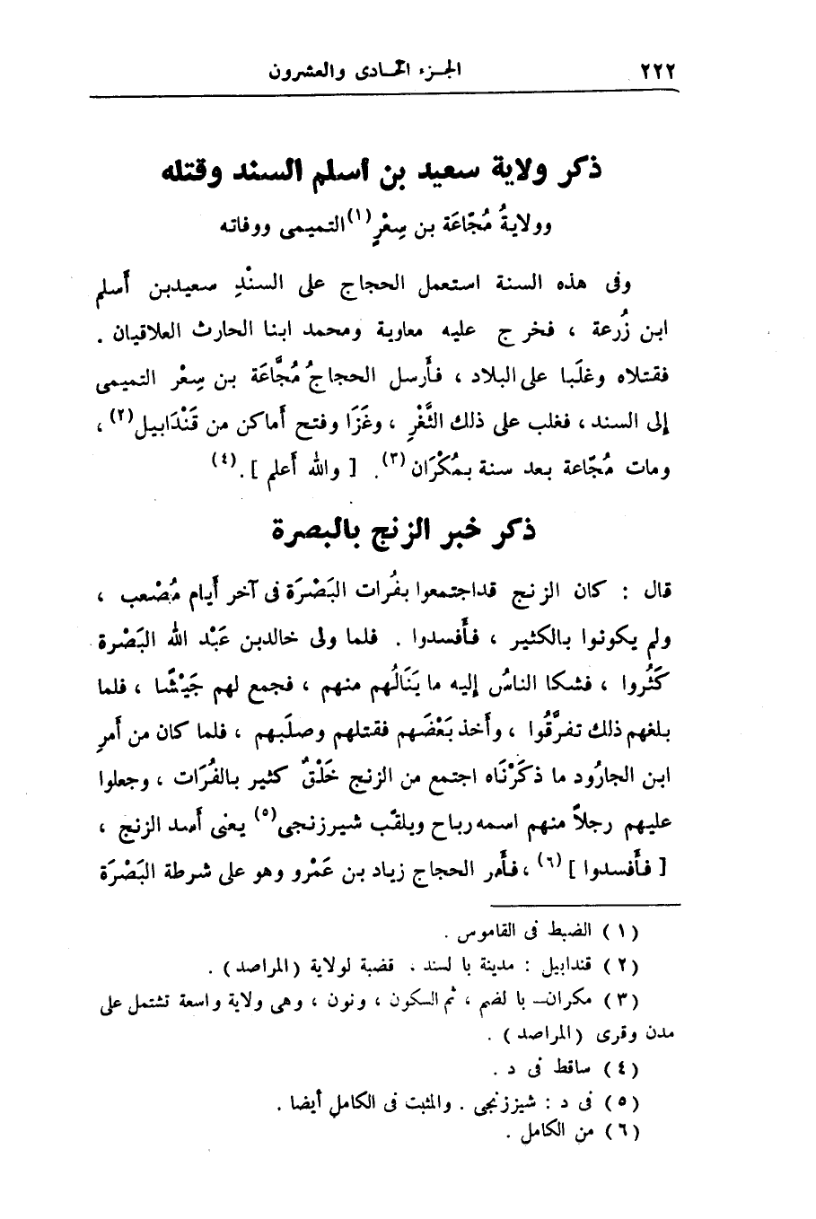فقتلاه وغلبا على البلاد، فأرسل الحجاج مجّاعة بن سعر التميمى إلى السند، فغلب على ذلك الثّغر، وغزا وفتح أماكن من قندابيل «2» ، ومات مجّاعة بعد سنة بمكران «3» . [والله أعلم] . «4»
