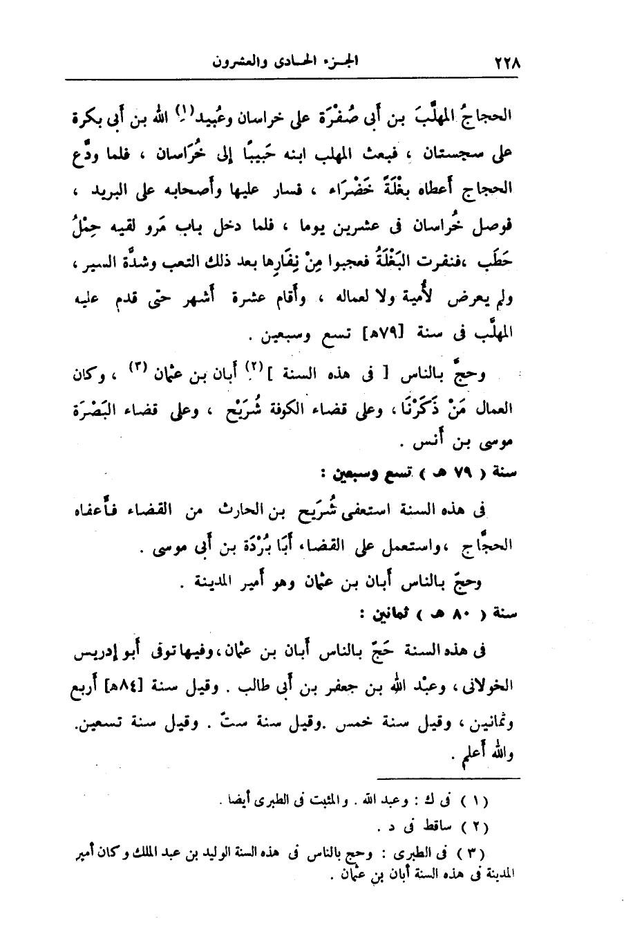 فى هذه السنة حجّ بالناس أبان بن عثمان، وفيها توفى أبو إدريس الخولانى، وعبد الله بن جعفر بن أبى طالب. وقيل سنة [84 هـ] أربع وثمانين، وقيل سنة خمس. وقيل سنة ستّ. وقيل سنة تسعين.
