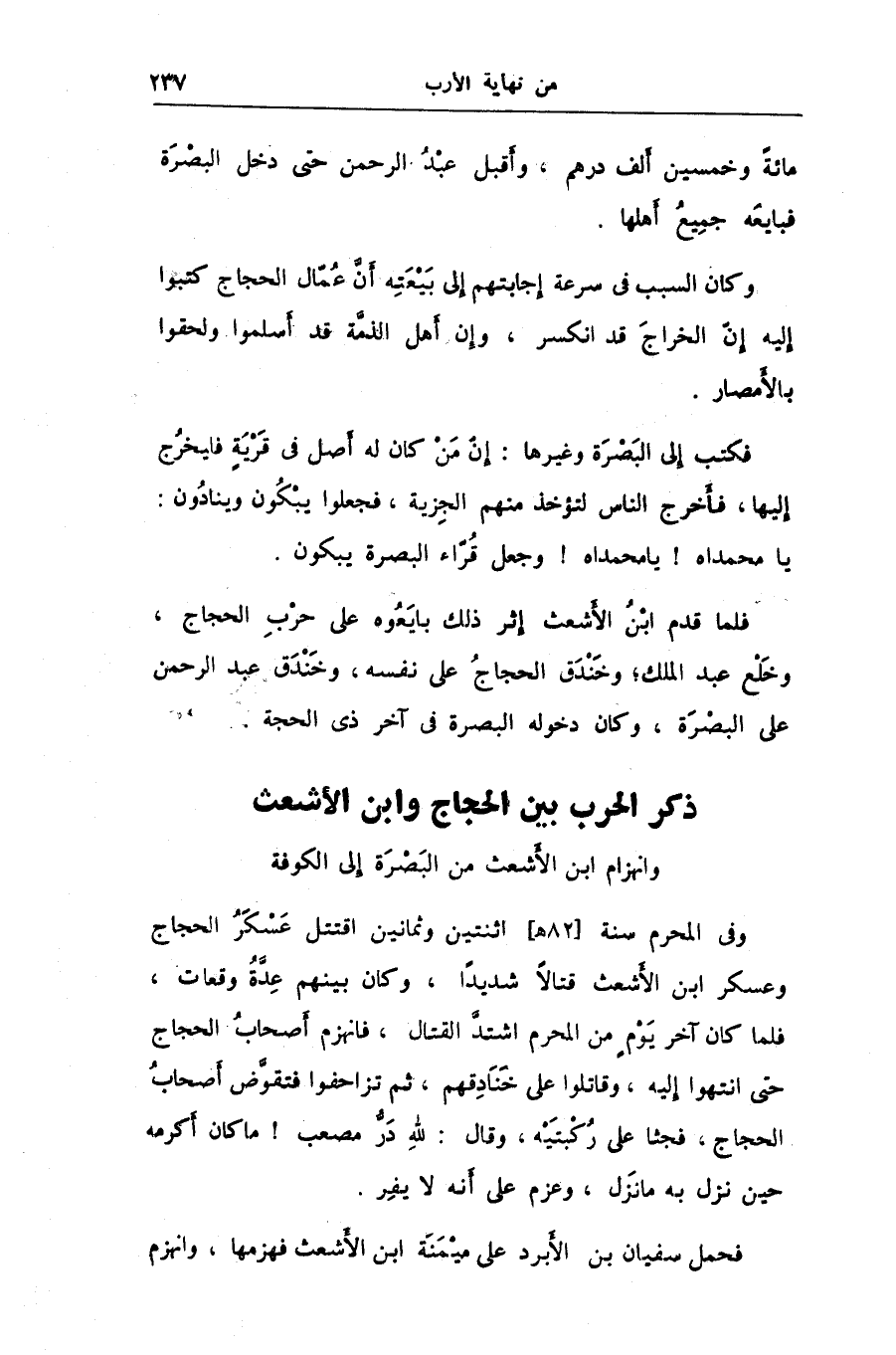 ذكر الحرب بين الحجاج وابن الأشعث وانهزام ابن الأشعث من البصرة إلى الكوفة