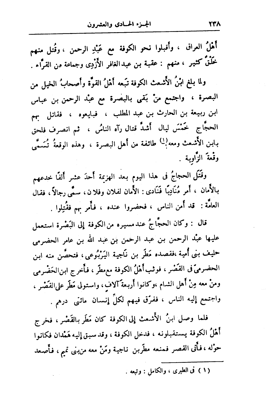 أهل العراق، وأقبلوا نحو الكوفة مع عبد الرحمن، وقتل منهم خلق كثير، منهم: عقبة بن عبد الغافر الأزدى وجماعة من القرّاء.