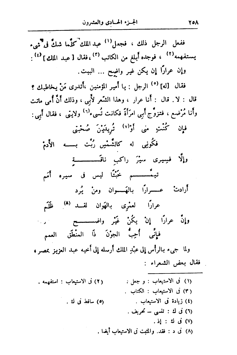 قال: لا. قال: أنا عرار، وهذا الشّعر لأبى، وذلك أنّ أمى ماتت وأنا مرضع، فتزوّج أبى امرأة فكانت تسىء «6» ولايتى، فقال أبى: