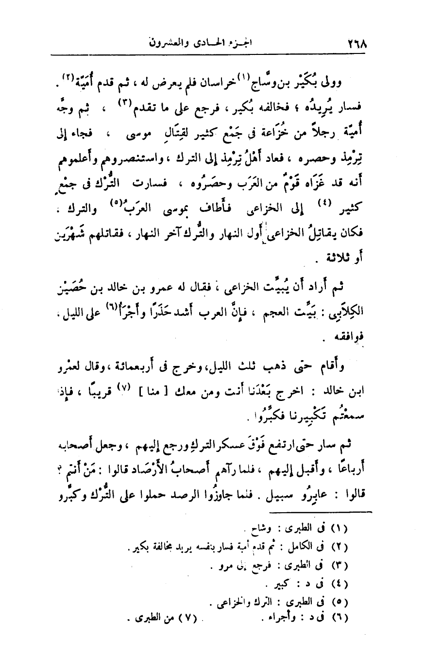 ثم أراد أن يبيّت الخزاعى، فقال له عمرو بن خالد بن حصين الكلابى: بيّت العجم، فإنّ العرب أشد حذرا وأجرأ «6» على الليل.