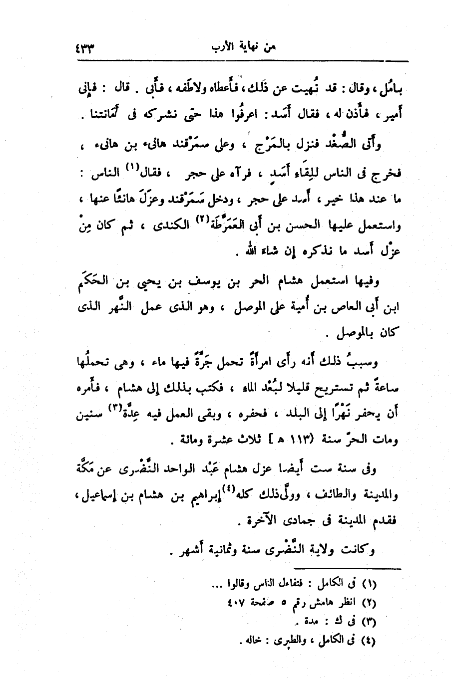 وفيها استعمل هشام الحر بن يوسف بن يحيى بن الحكم ابن أبى العاص بن أمية على الموصل، وهو الذى عمل النّهر الذى كان بالموصل.