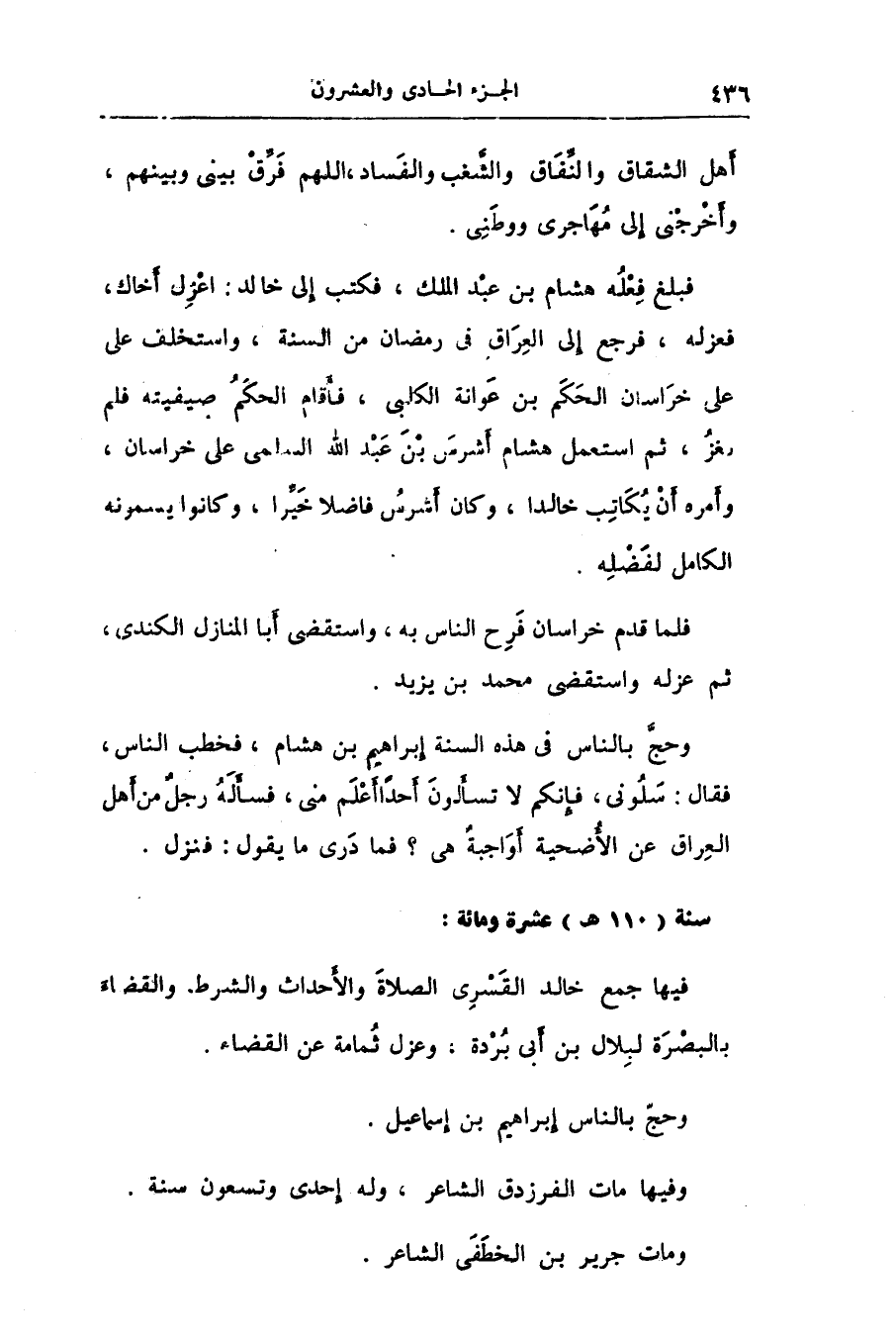 سنة (110 هـ) عشرة ومائة: