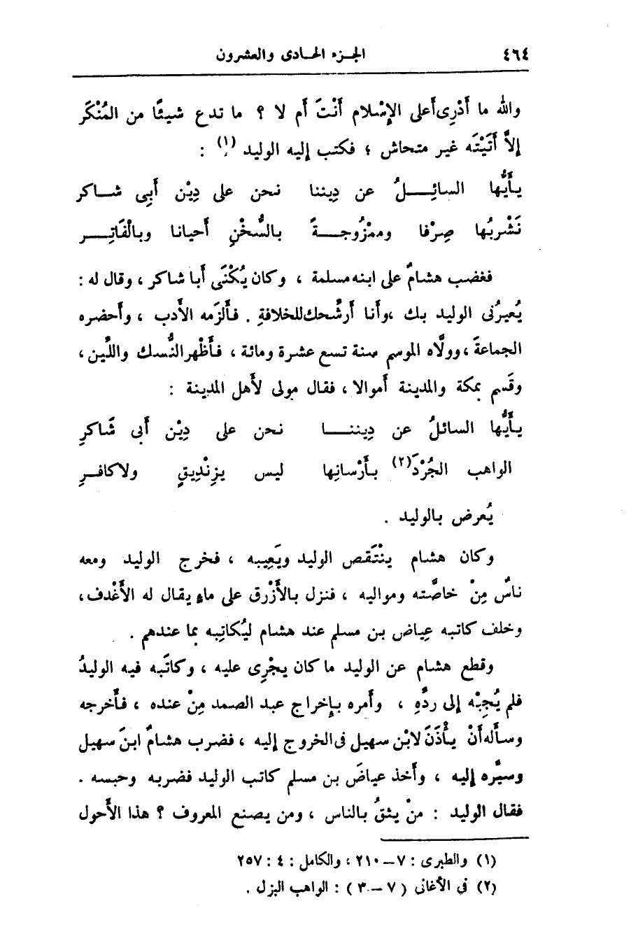 فغضب هشام على ابنه مسلمة، وكان يكنى أبا شاكر، وقال له: