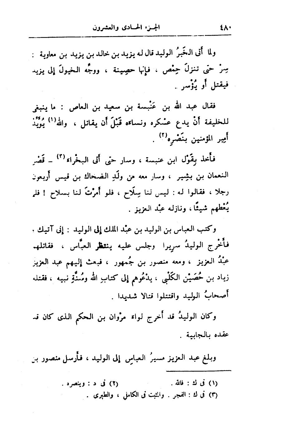 فأخرج الوليد سريرا وجلس عليه ينتظر العبّاس، فقاتلهم عبد العزيز، ومعه منصور بن جمهور، فبعث إليهم عبد العزيز زياد بن حصين الكلبى، يدعوهم إلى كتاب الله وسنّة نبيه، فقتله أصحاب الوليد واقتتلوا قتالا شديدا.