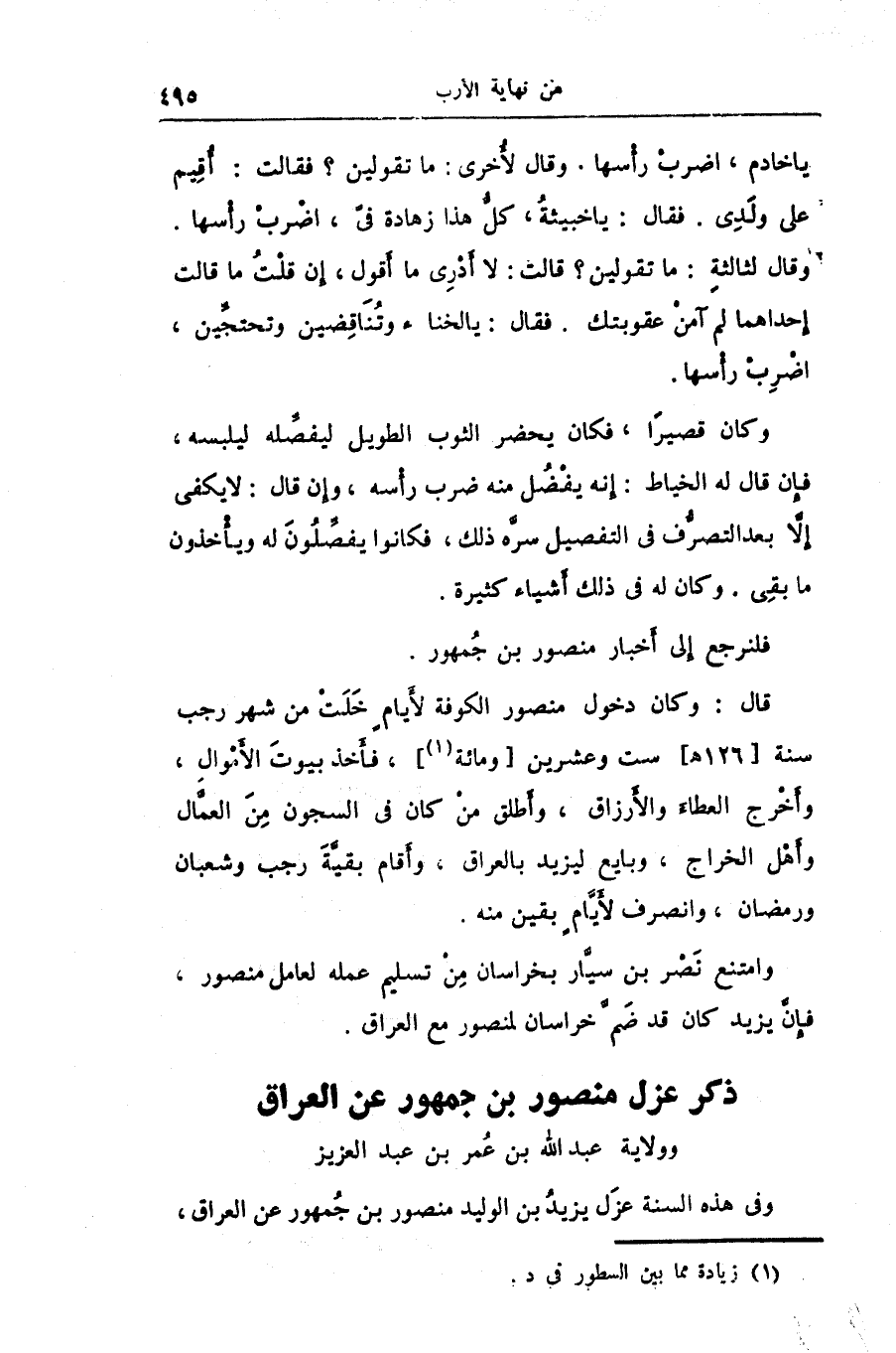 وفى هذه السنة عزل يزيد بن الوليد منصور بن جمهور عن العراق،