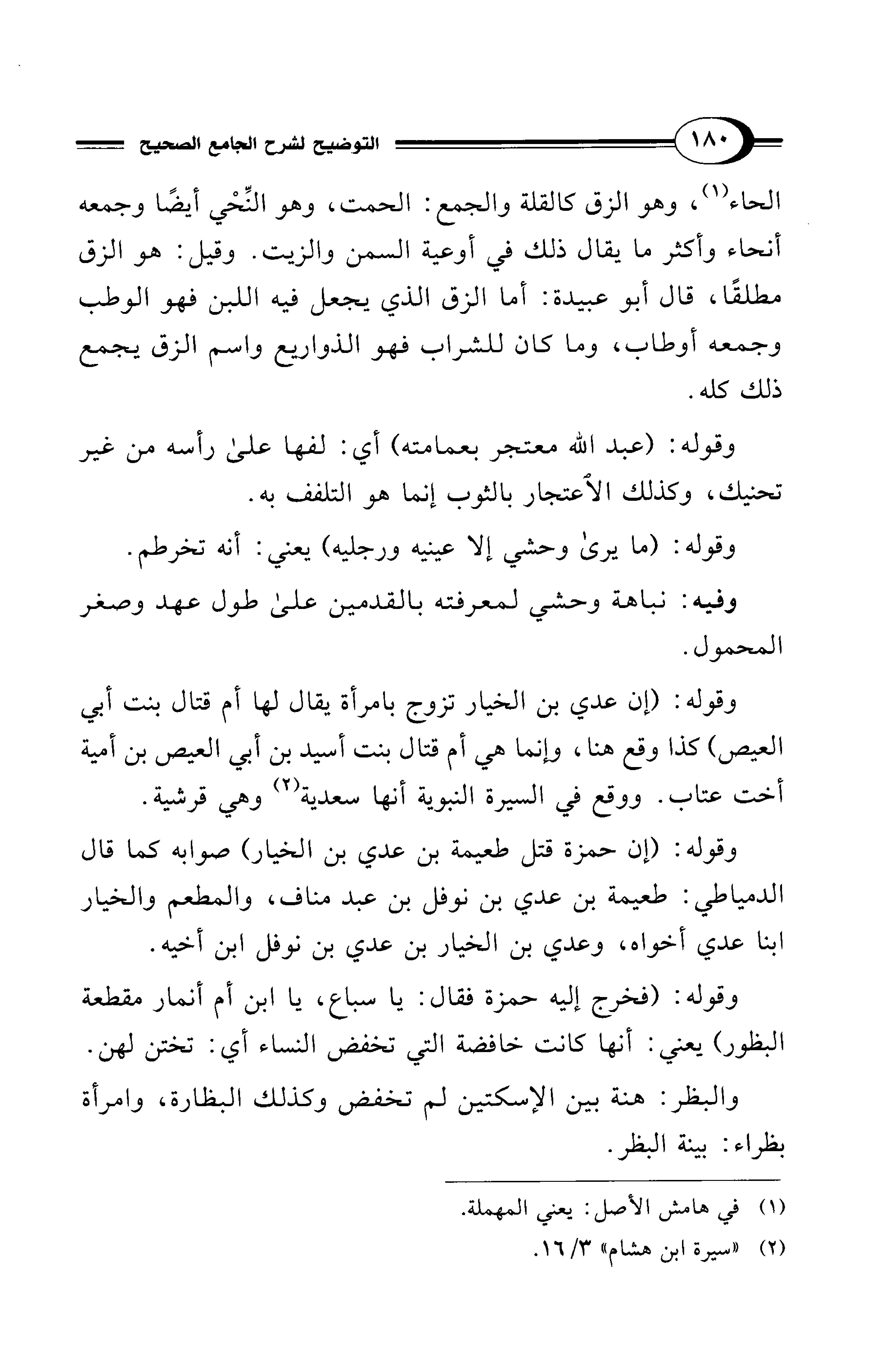 وقوله: (إن حمزة قتل طعيمة بن عدي بن الخيار) صوابه كما قال الدمياطي: طعيمة بن عدي بن نوفل بن عبد مناف، والمطعم والخيار ابنا عدي أخواه، وعدي بن الخيار بن عدي بن نوفل ابن أخيه.