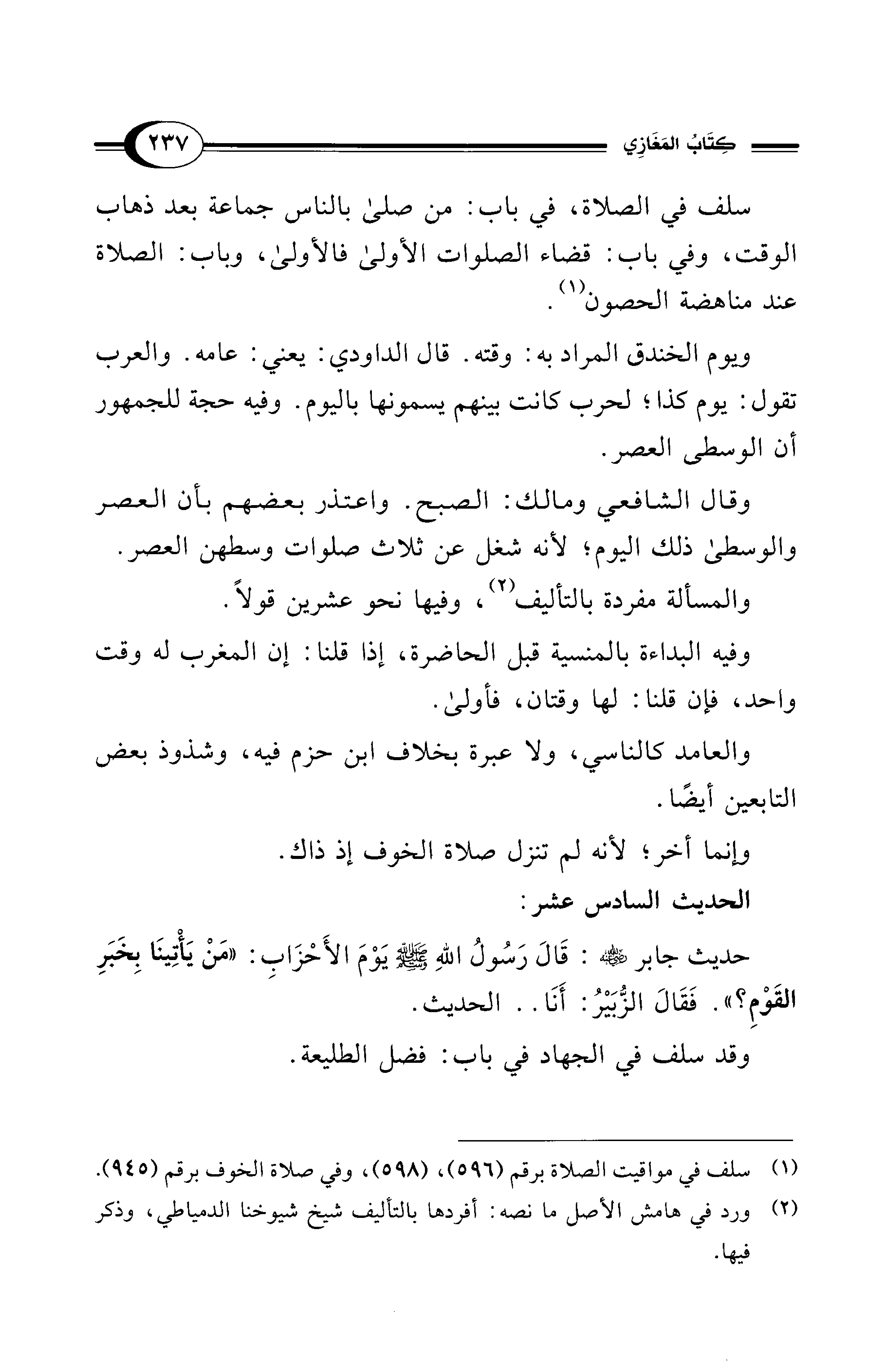 (¬1) سلف في مواقيت الصلاة برقم (596)، (598)، وفي صلاة الخوف برقم (945).