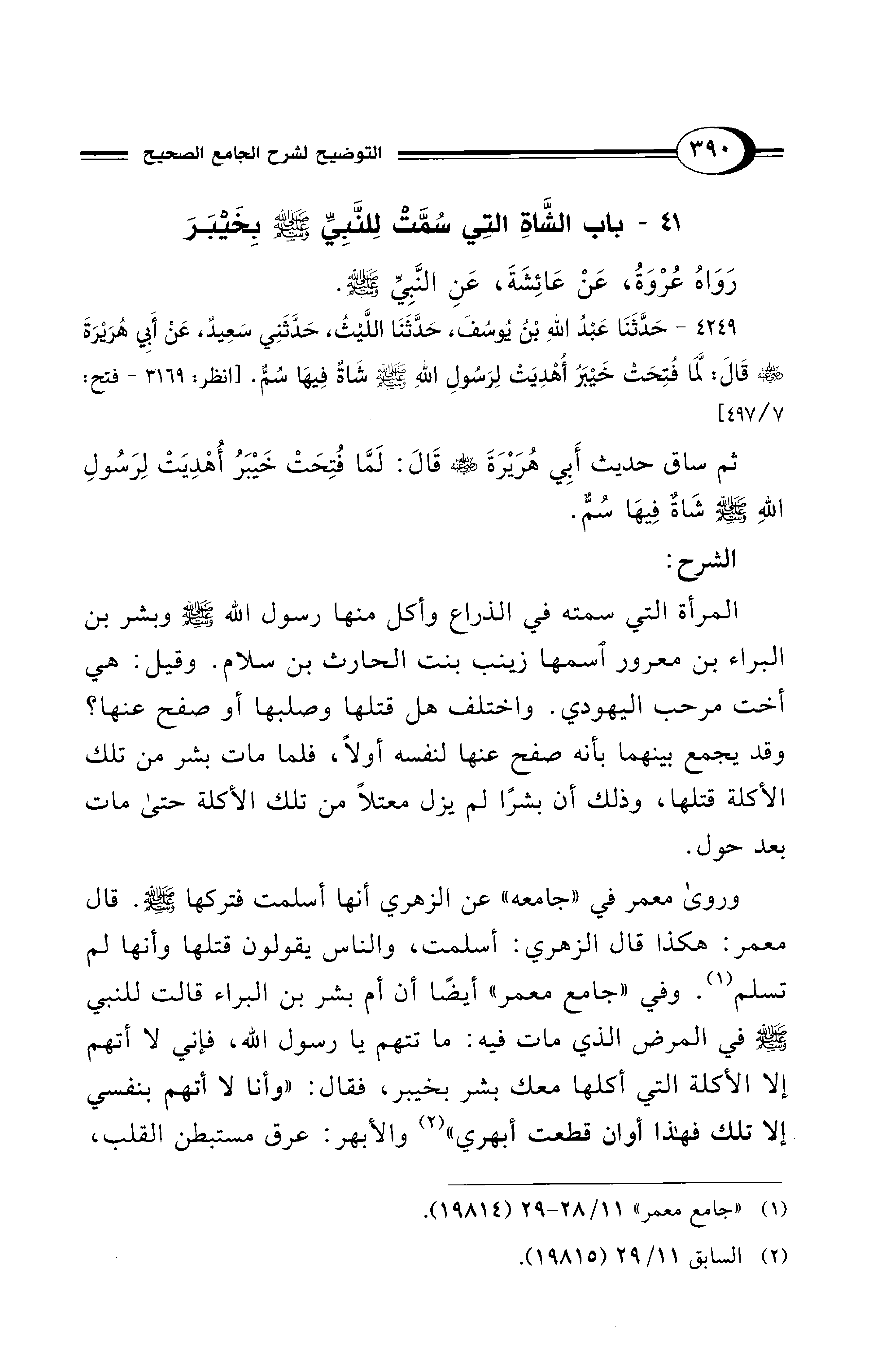 41 - باب الشَّاةِ الَّتِي سُمَّتْ لِلنَّبِيِّ - صلى الله عليه وسلم - بِخَيْبَرَ