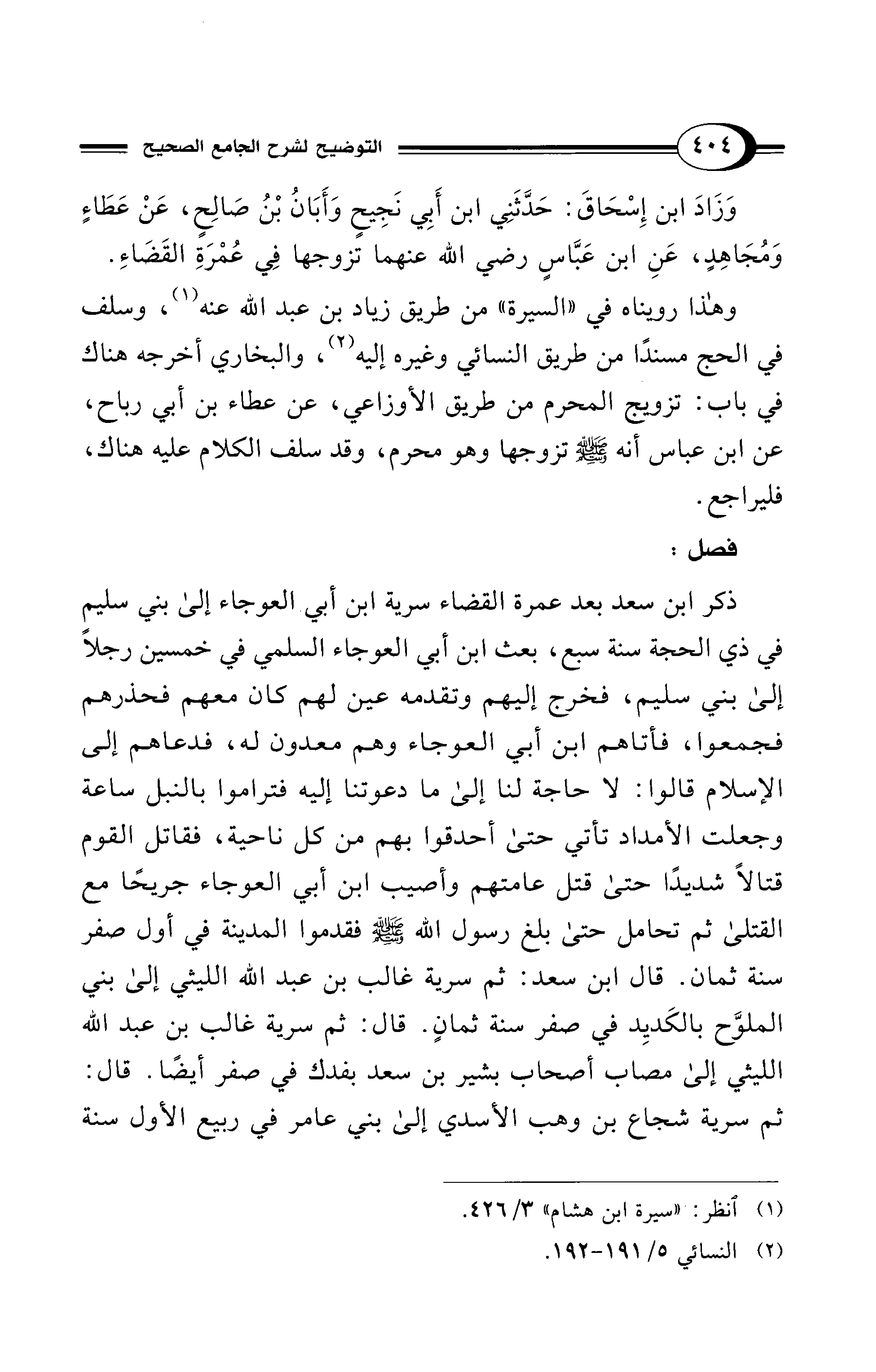 وَزَادَ ابن إِسْحَاقَ: حَدَّثَنِي ابن أَبِي نَجِيحٍ وَأَبَانُ بْنُ صَالِحٍ، عَنْ عَطَاءٍ وَمُجَاهِدٍ، عَنِ ابن عَبَّاسٍ رضي الله عنهما تزوجها فِي عُمْرَةِ القَضَاءِ.