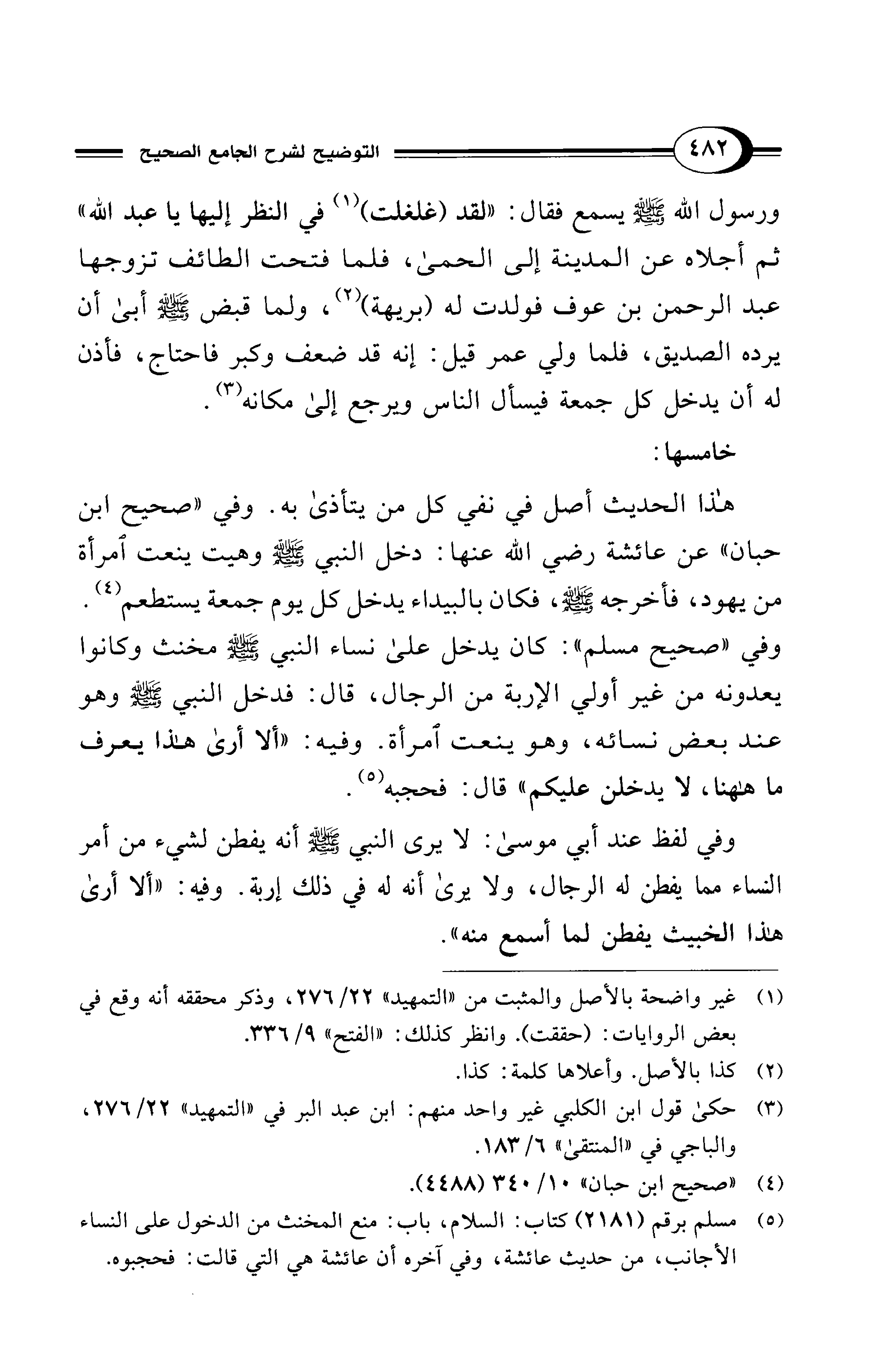 (¬5) مسلم برقم (2181) كتاب: السلام، باب: منع المخنث من الدخول على النساء الأجانب، من حديث عائشة، وفي آخره أن عائشة هي التي قالت: فحجبوه.