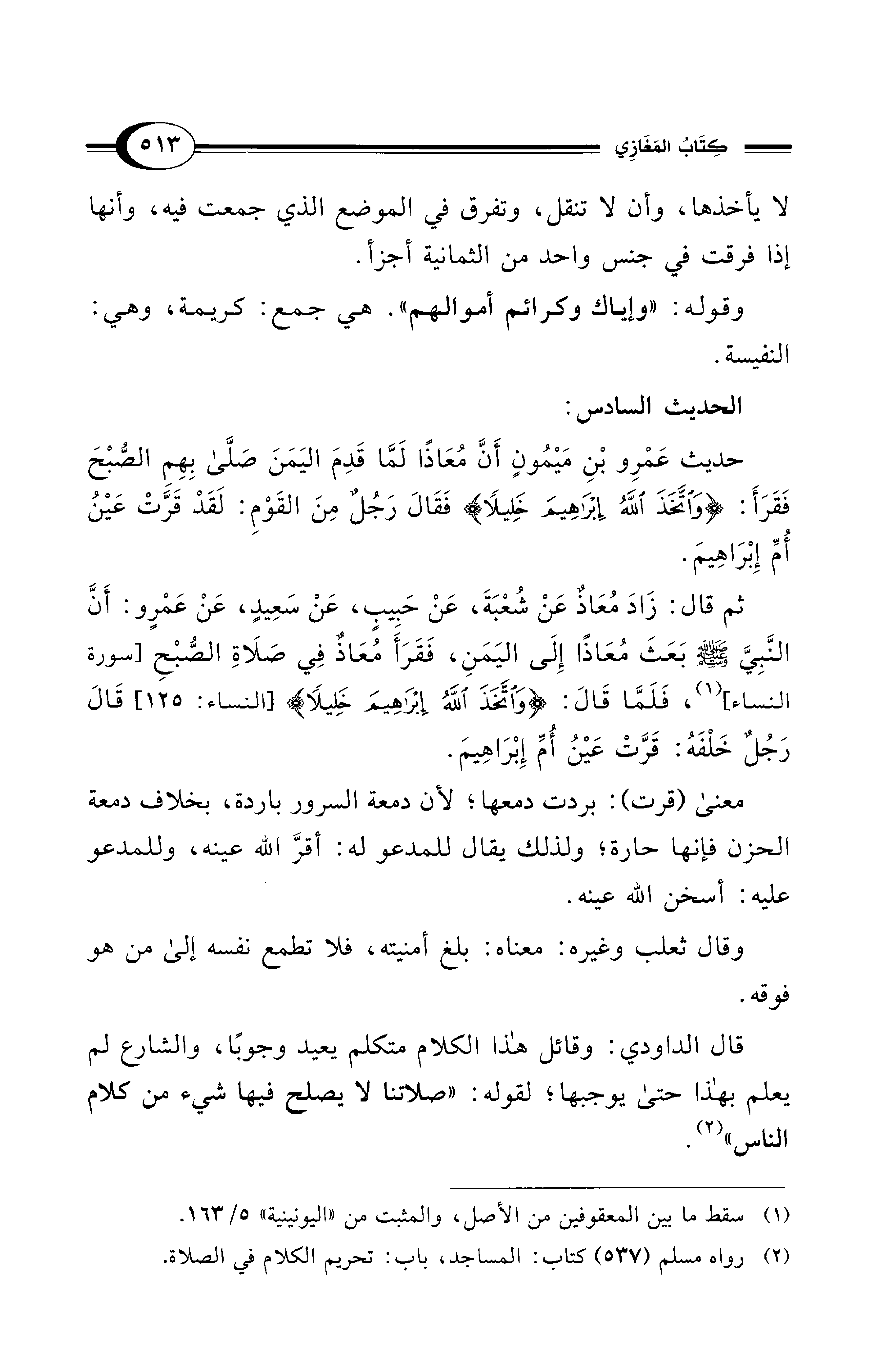ثم قال: زَادَ مُعَاذٌ عَنْ شُعْبَةَ، عَنْ حَبيبٍ، عَنْ سَعِيدٍ، عَنْ عَمْرٍو: أَنَّ النَّبِيَّ - صلى الله عليه وسلم - بَعَثَ مُعَاذًا إِلَى اليَمَنِ، فَقَرَأً مُعَاذٌ فِي صَلَاةِ الصُّبْحِ [سورة النساء] (¬1)، فَلَمَّا قَالَ: {وَاتَّخَذَ اللهُ إِبْرَاهِيمَ خَلِيلًا} [النساء:: 125] قَالَ رَجُلٌ خَلْفَهُ: قَرَّتْ عَيْنُ أُمِّ إِبْرَاهِيمَ.