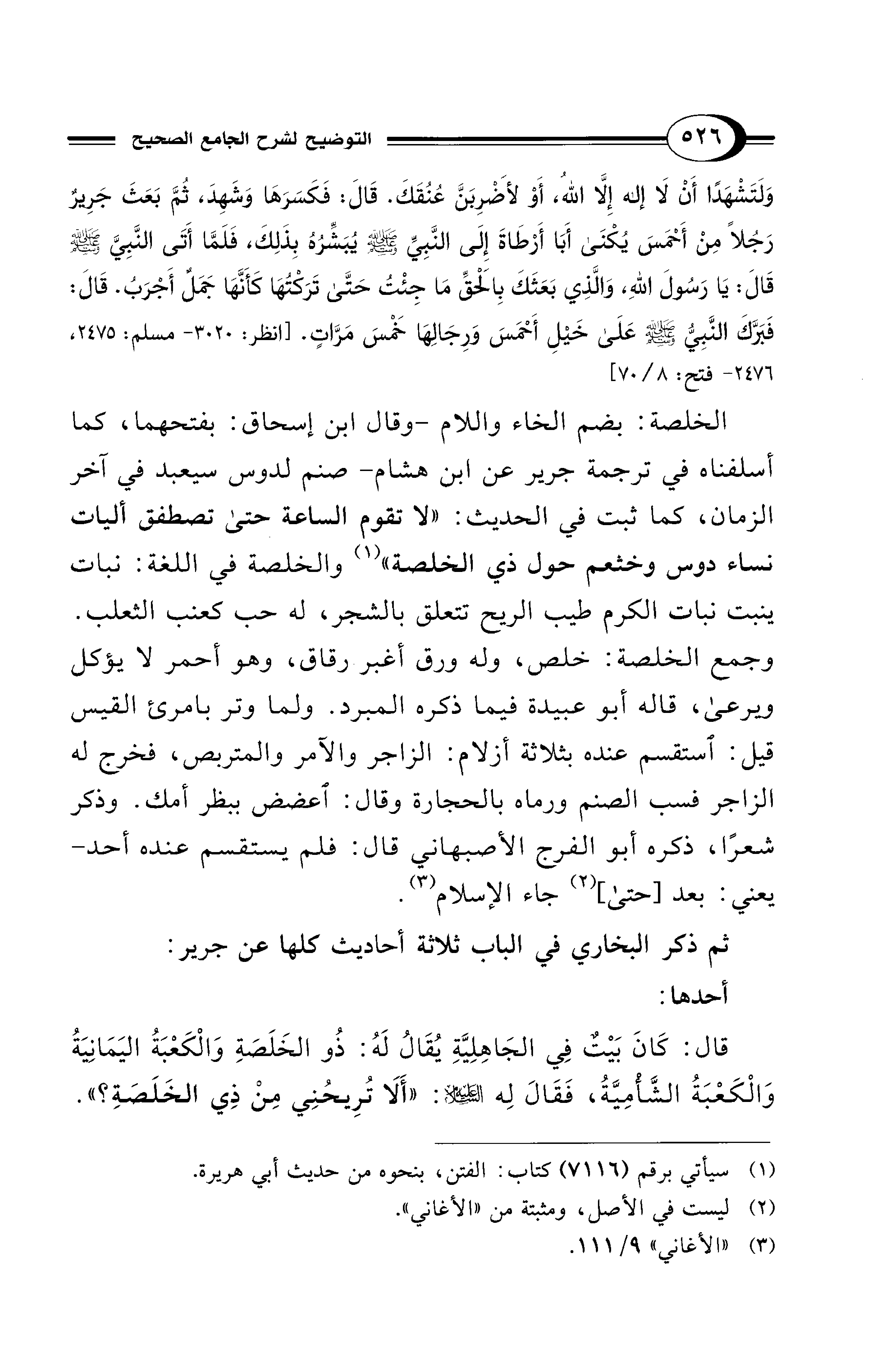 قال: كَانَ بَيْتٌ فِي الجَاهِلِيَّةِ يُقَالُ لَهُ: ذُو الخَلَصَةِ وَالْكَعْبَةُ اليَمَانِيَةُ وَالْكَعْبَةُ الشَّامِيَّةُ، فَقَالَ لِه - عليه السلام -: "أَلَا تُرِيحُنِي مِنْ ذِي الخَلَصَةِ؟ ".