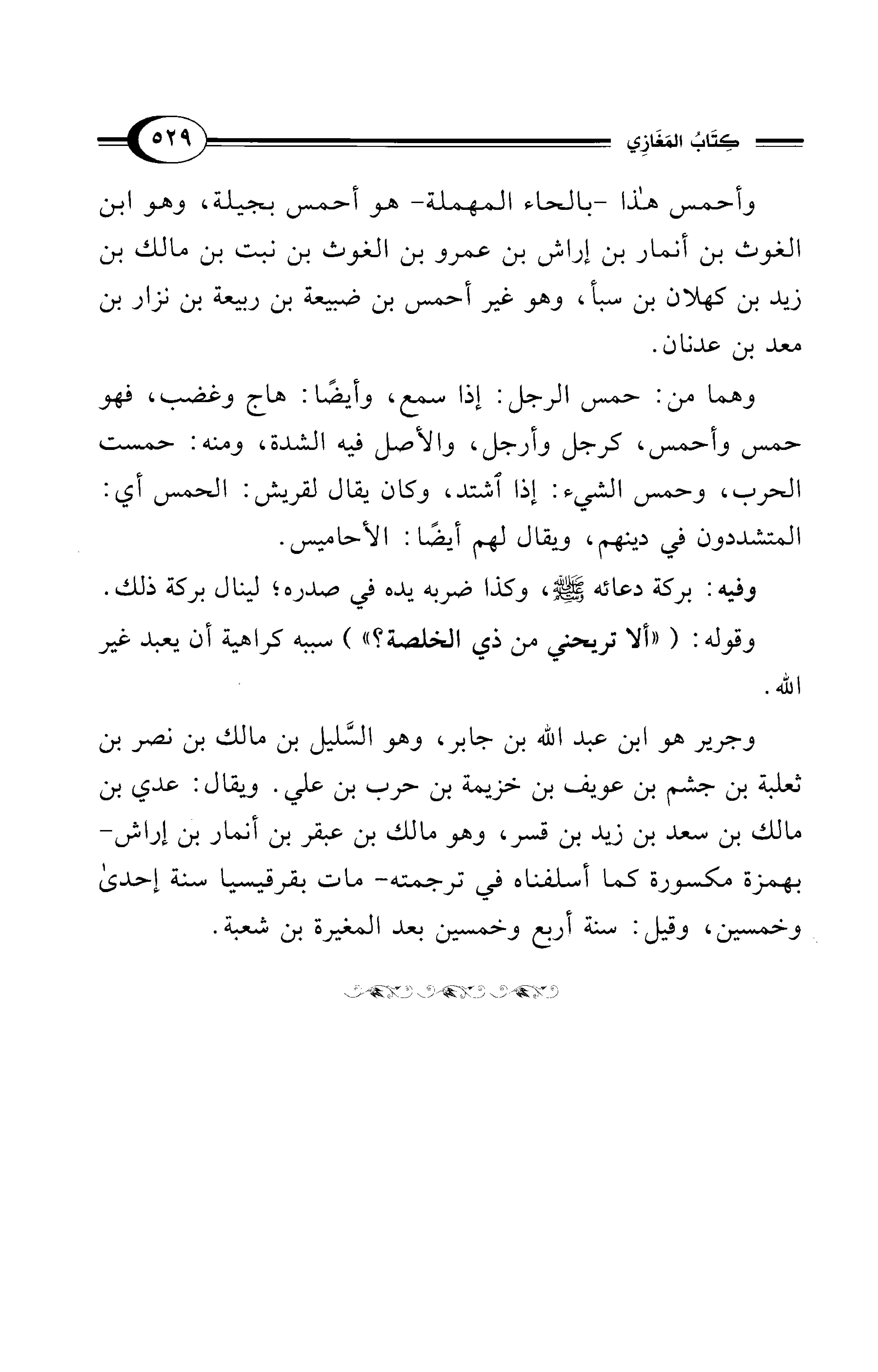 وجرير هو ابن عبد الله بن جابر، وهو السَّليل بن مالك بن نصر بن ثعلبة بن جشم بن عويف بن خزيمة بن حرب بن علي. ويقال: عدي بن مالك بن سعد بن زيد بن قسر، وهو مالك بن عبقر بن أنمار بن إراش -بهمزة مكسورة كما أسلفناه في ترجمته- مات بقرقيسيا سنة إحدى وخمسين، وقيل: سنة أربع وخمسين بعد المغيرة بن شعبة.