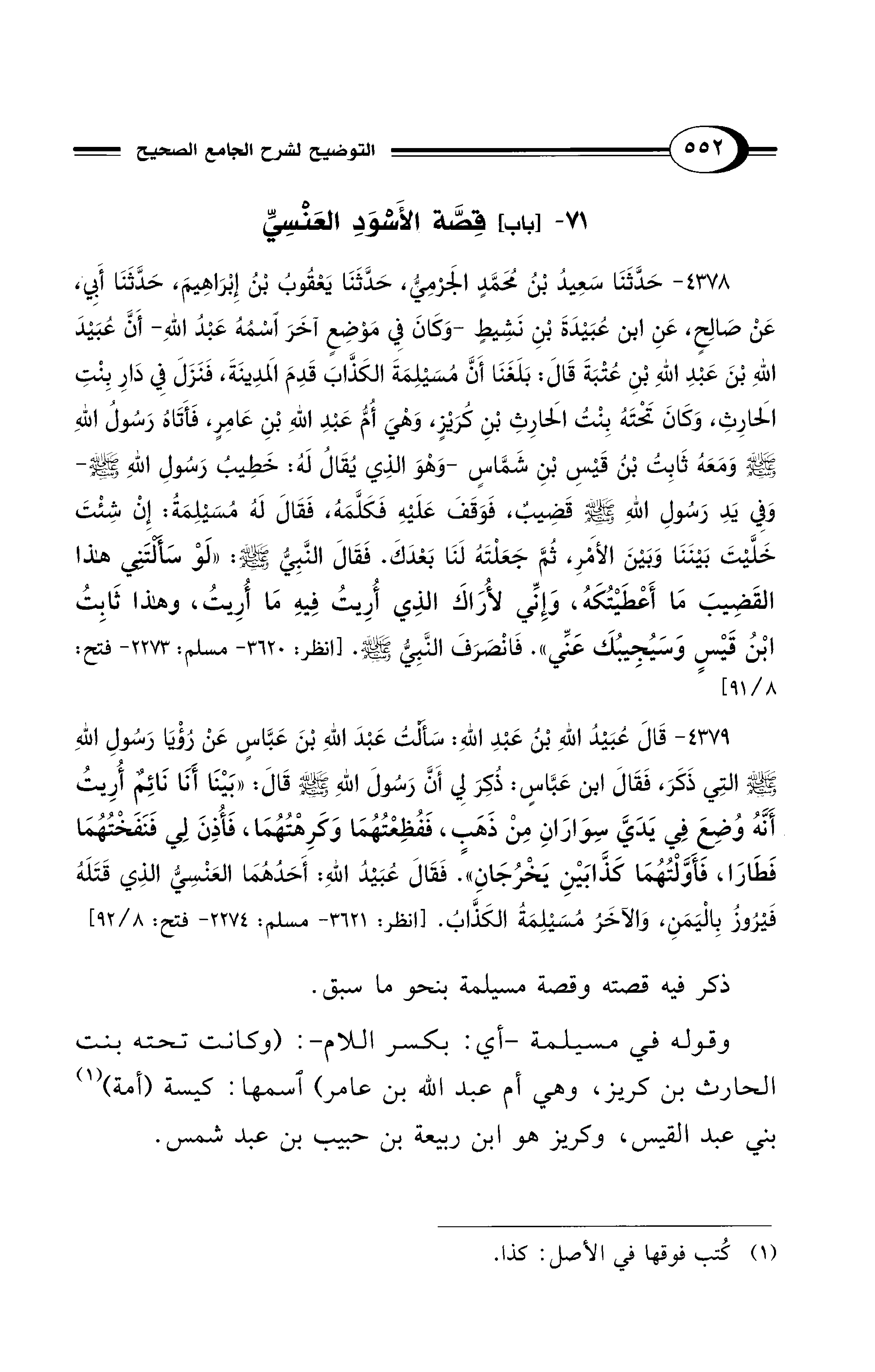71 - [باب] قِصَّة الأَسْوَدِ الْعَنْسِيِّ