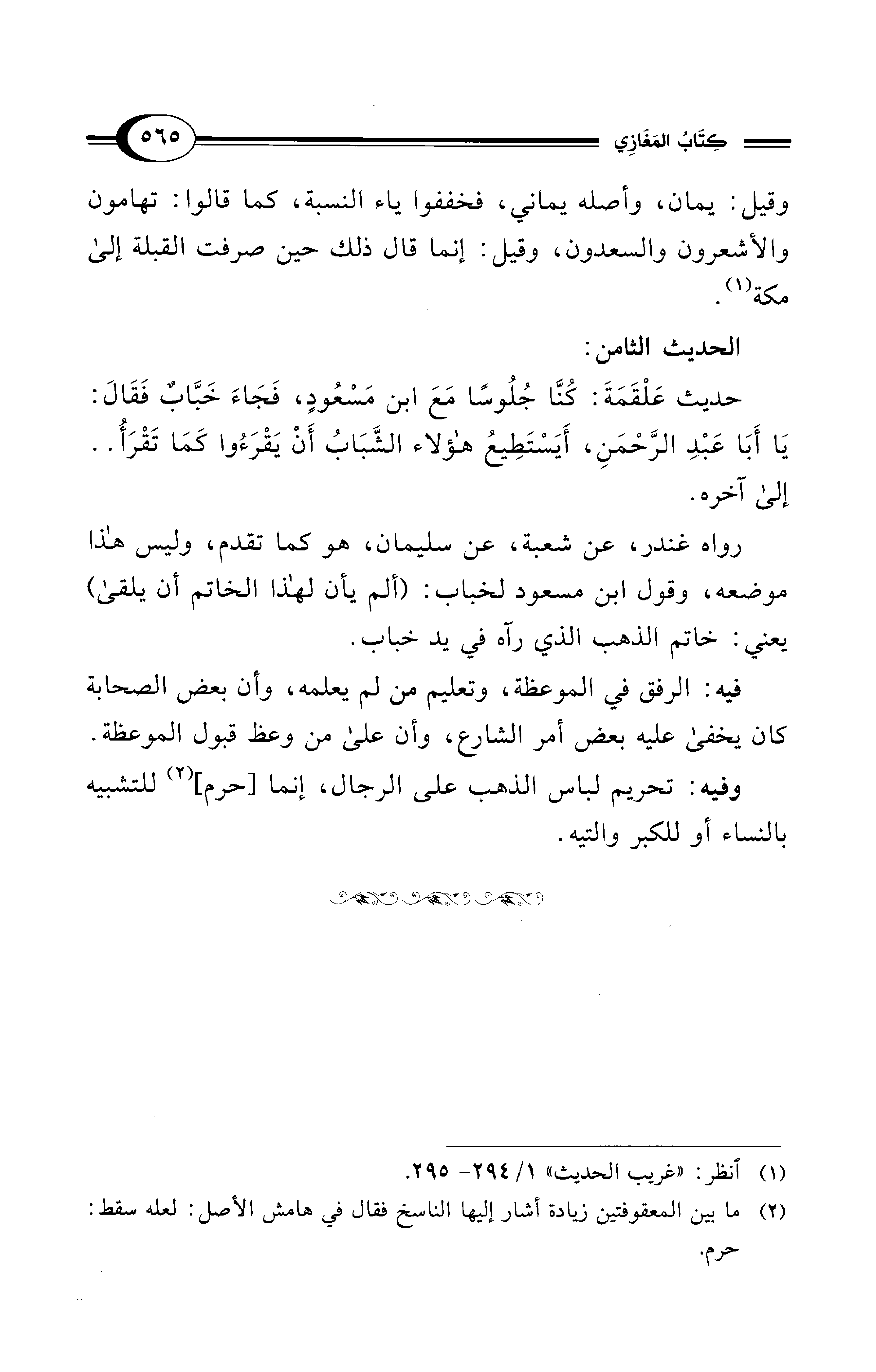 حديث عَلْقَمَةَ: كُنَّا جُلُوسًا مَعَ ابن مَسْعُودٍ، فَجَاءَ خَبَّابٌ فَقَالَ: يَا أَبَا عَبْدِ الرَّحْمَنِ، أَيَسْتَطِيعُ هؤلاء الشَّبَابُ أَنْ يَقْرَءُوا كَمَا تَقْرَأُ .. إلى آخره.