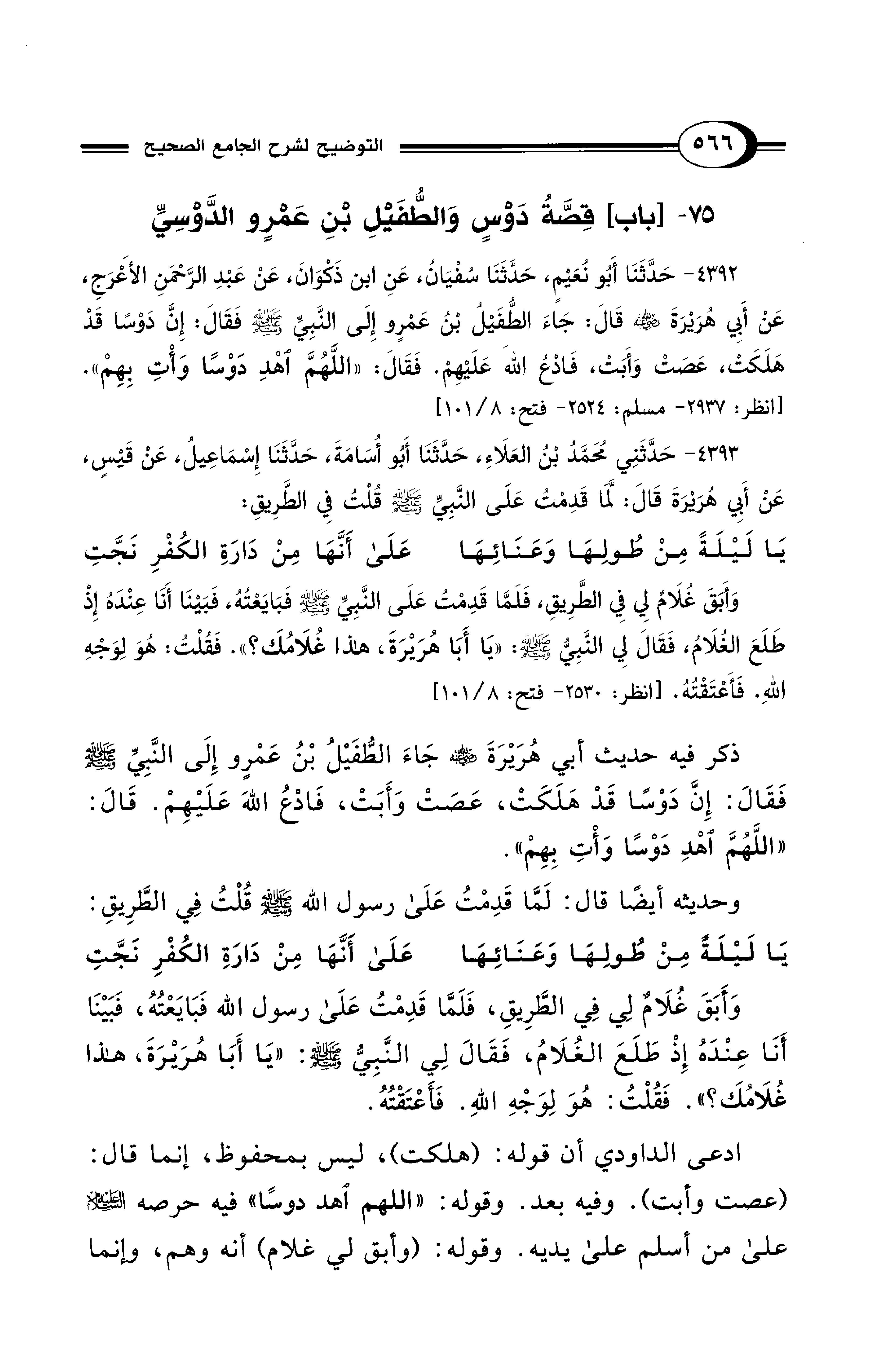 75 - [باب] قِصَّةُ دَوْسٍ وَالطُّفَيْلِ بْنِ عَمْرٍو الدَّوْسِيِّ