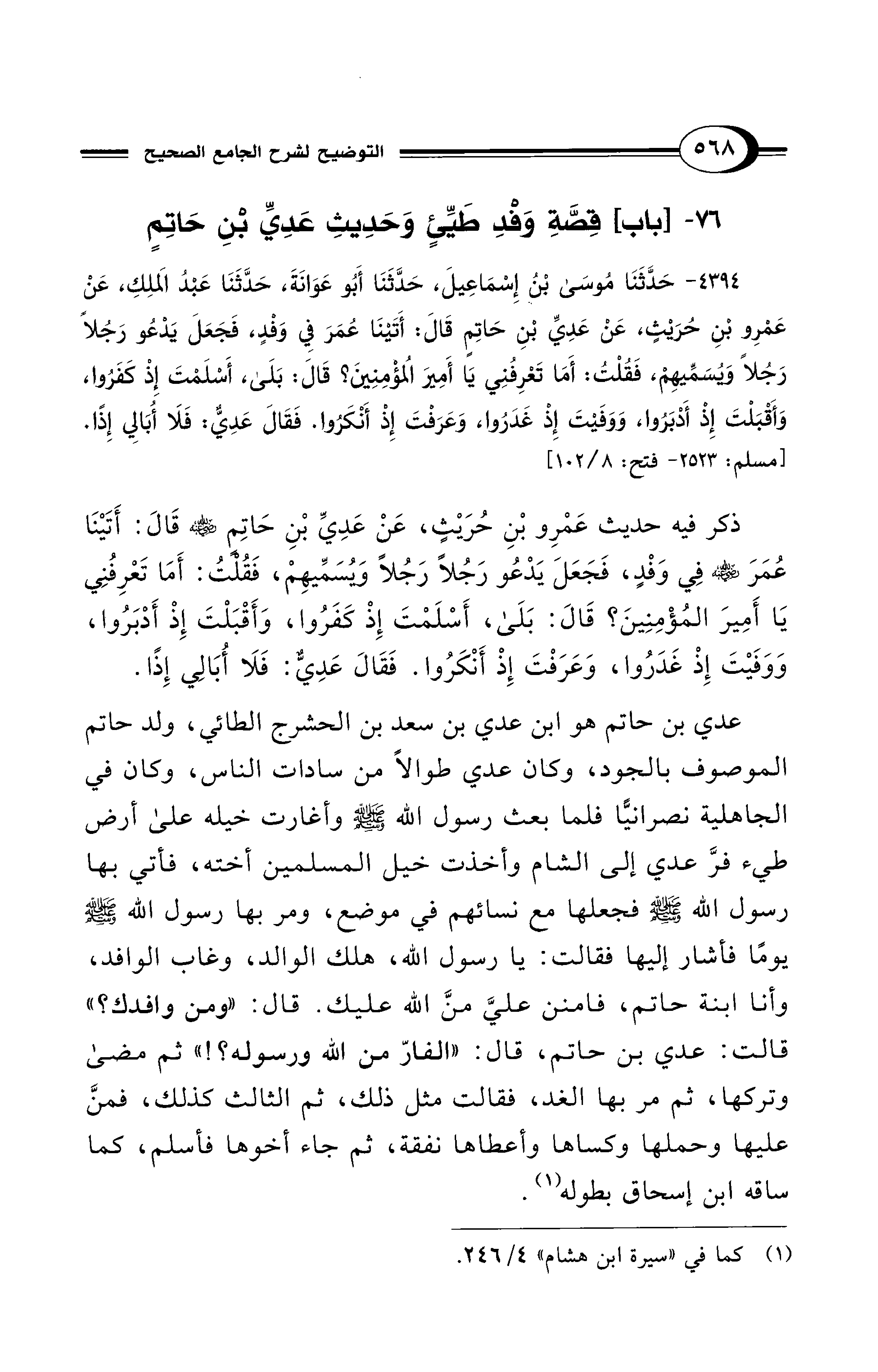 76 - [باب] قِصَّةِ وَفْدِ طَيِّئٍ وَحَدِيثِ عَدِيِّ بْنِ حَاتِمٍ