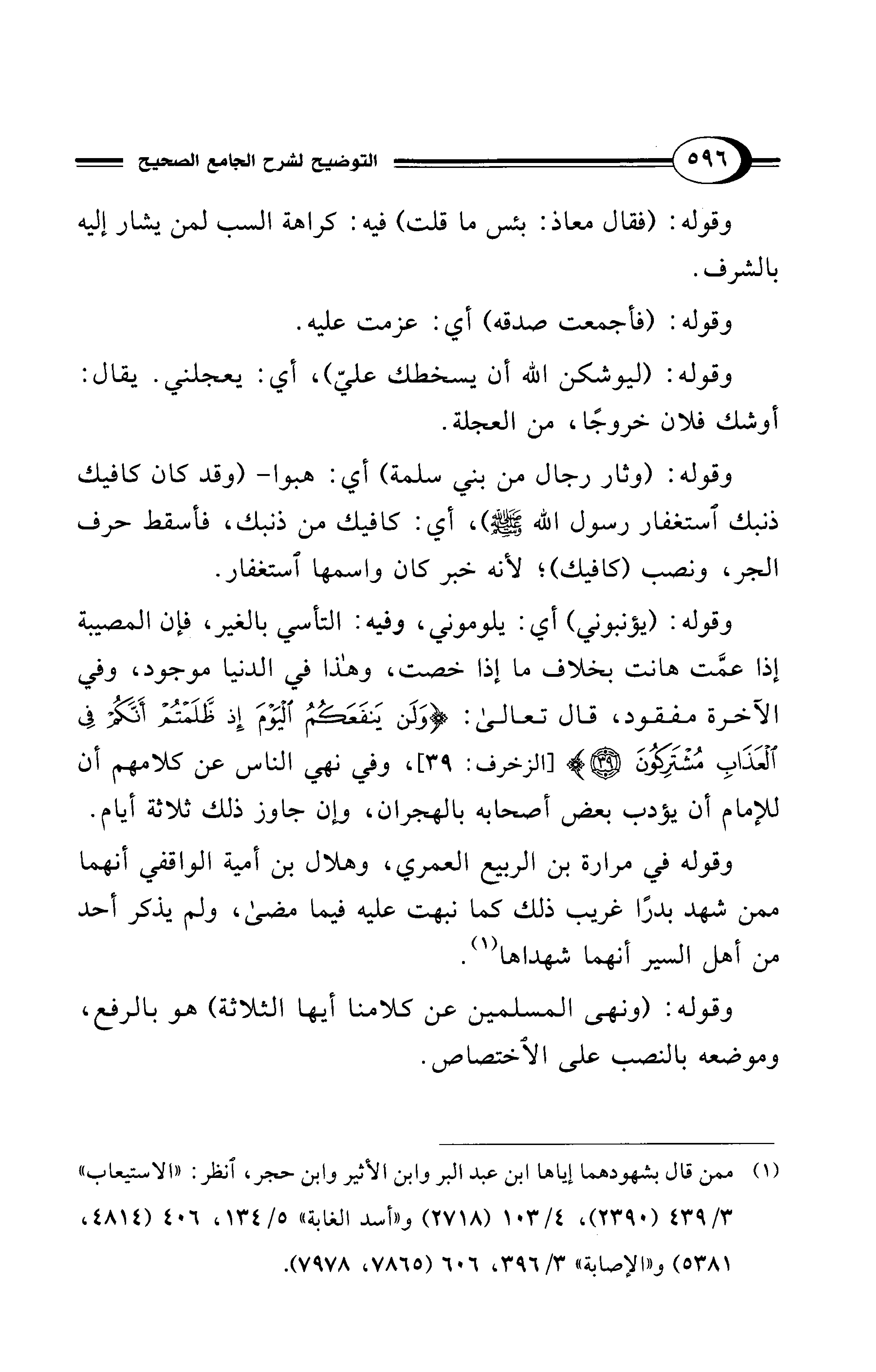 (¬1) ممن قال بشهودهما إياها ابن عبد البر وابن الأثير وابن حجر، انظر: "الاستيعاب" 3/ 439 (2390)، 4/ 103 (2718) و"أسد الغابة" 5/ 134، 406 (4814، 5381) و"الإصابة" 3/ 396، 606 (7865، 7978).