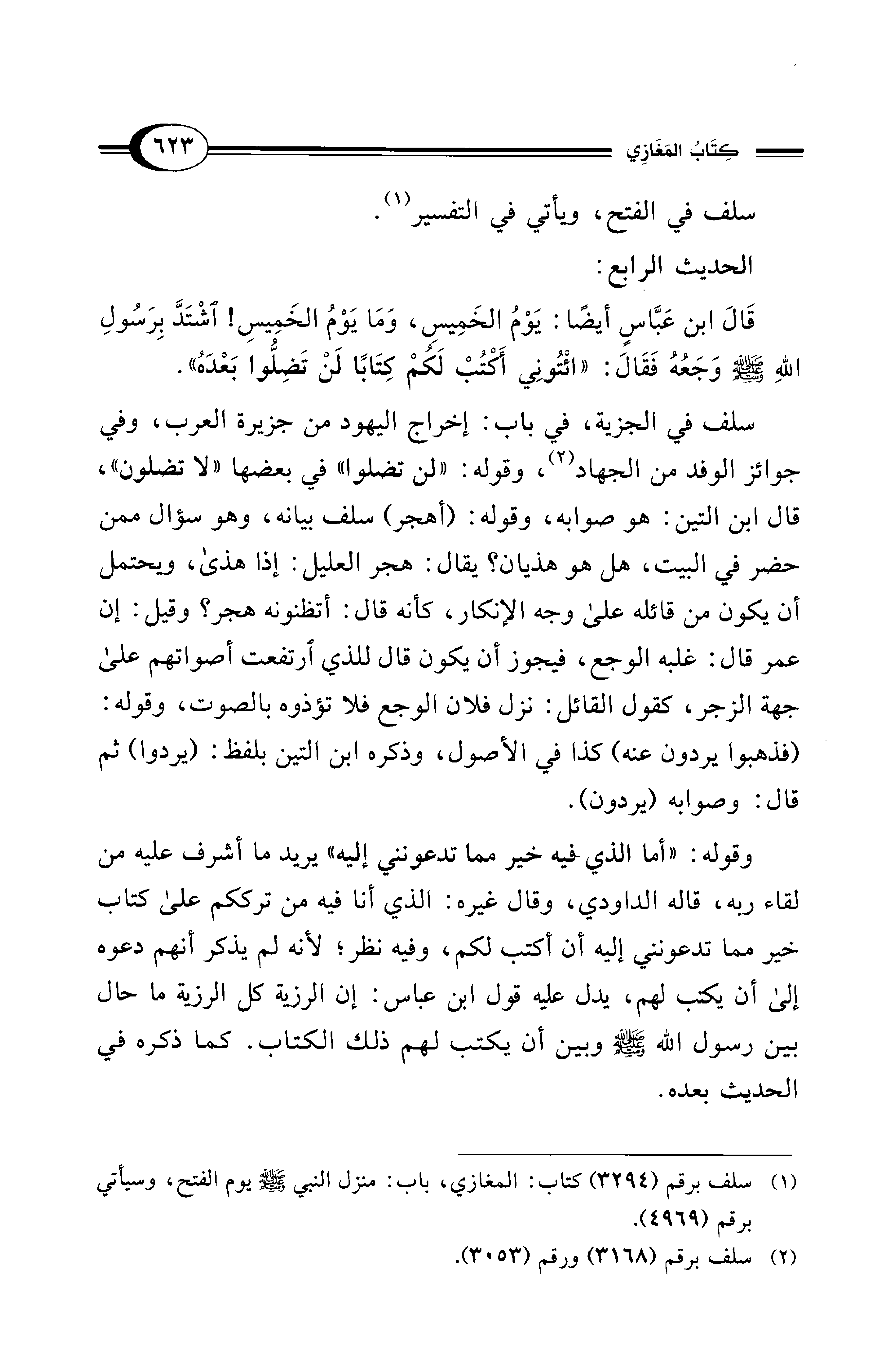 قَالَ ابن عَبَّاسٍ أيضًا: يَوْمُ الخَمِيسِ، وَمَا يَوْمُ الخَمِيسِ! اشْتَدَّ بِرَسُولِ اللهِ - صلى الله عليه وسلم - وَجَعُهُ فَقَالَ: "ائْتُونِي أَكتُبْ لَكُمْ كِتَابًا لَنْ تَضِلُّوا بَعْدَهُ".