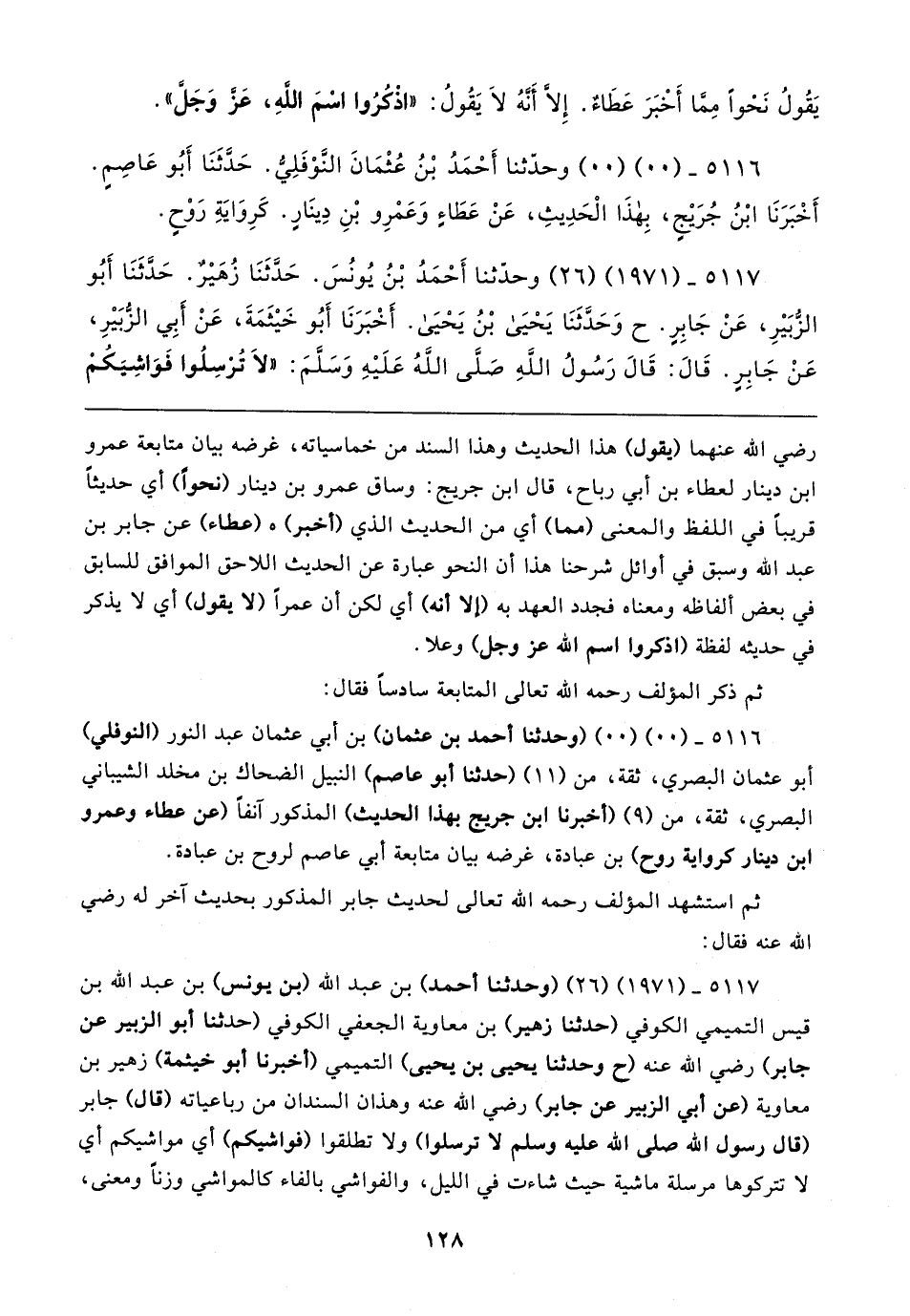 ٥١١٦ - (٠٠) (٠٠) (وحدثنا أحمد بن عثمان) بن أبي عثمان عبد النور (النوفلي) أبو عثمان البصري، ثقة، من (١١) (حدثنا أبو عاصم) النبيل الضحاك بن مخلد الشيباني البصري، ثقة، من (٩) (أخبرنا ابن جريج بهذا الحديث) المذكور آنفًا (عن عطاء وعمرو بن دينار كرواية روح) بن عبادة، غرضه بيان متابعة أبي عاصم لروح بن عبادة.