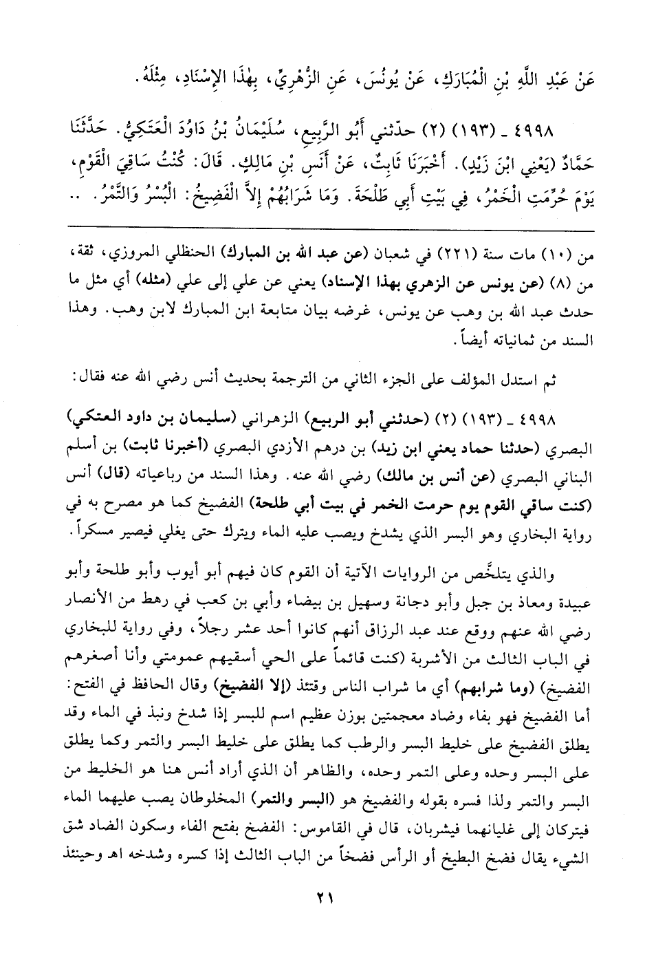 ٤٩٩٨ - (١٩٣) (٢) (حَدَّثني أبو الرَّبيع) الزهراني (سليمان بن داود العتكي) البَصْرِيّ (حَدَّثَنَا حماد يعني ابن زيد) بن درهم الأَزدِيّ البَصْرِيّ (أخبرنا ثابت) بن أسلم البناني البَصْرِيّ (عن أنس بن مالك) رضي الله عنه. وهذا السند من رباعياته (قال) أنس (كنت ساقي القوم يوم حرمت الخمر في بيت أبي طلحة) الفضيخ كما هو مصرح به في رواية البُخَارِيّ وهو البسر الذي يشدخ ويصب عليه الماء ويترك حتَّى يغلي فيصير مسكرًا.