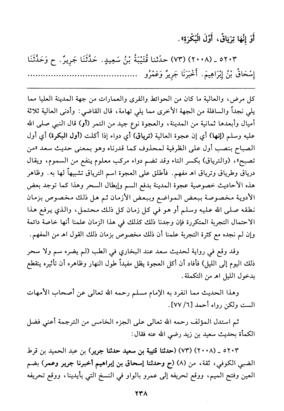 ٥٢٠٣ - (٢٠٠٨) (٧٣) (حدثنا قتيبة بن سعيد حدثنا جرير) بن عبد الحميد بن قرط الضبي الكوفي، ثقة، من (٨) (ح وحدثنا إسحاق بن إبراهيم أخبرنا جرير وعمر) بضم العين وفتح الميم، ووقع تحريفه إلى عمرو بالواو في النسخ التي بأيدينا، ووقع تحريفه